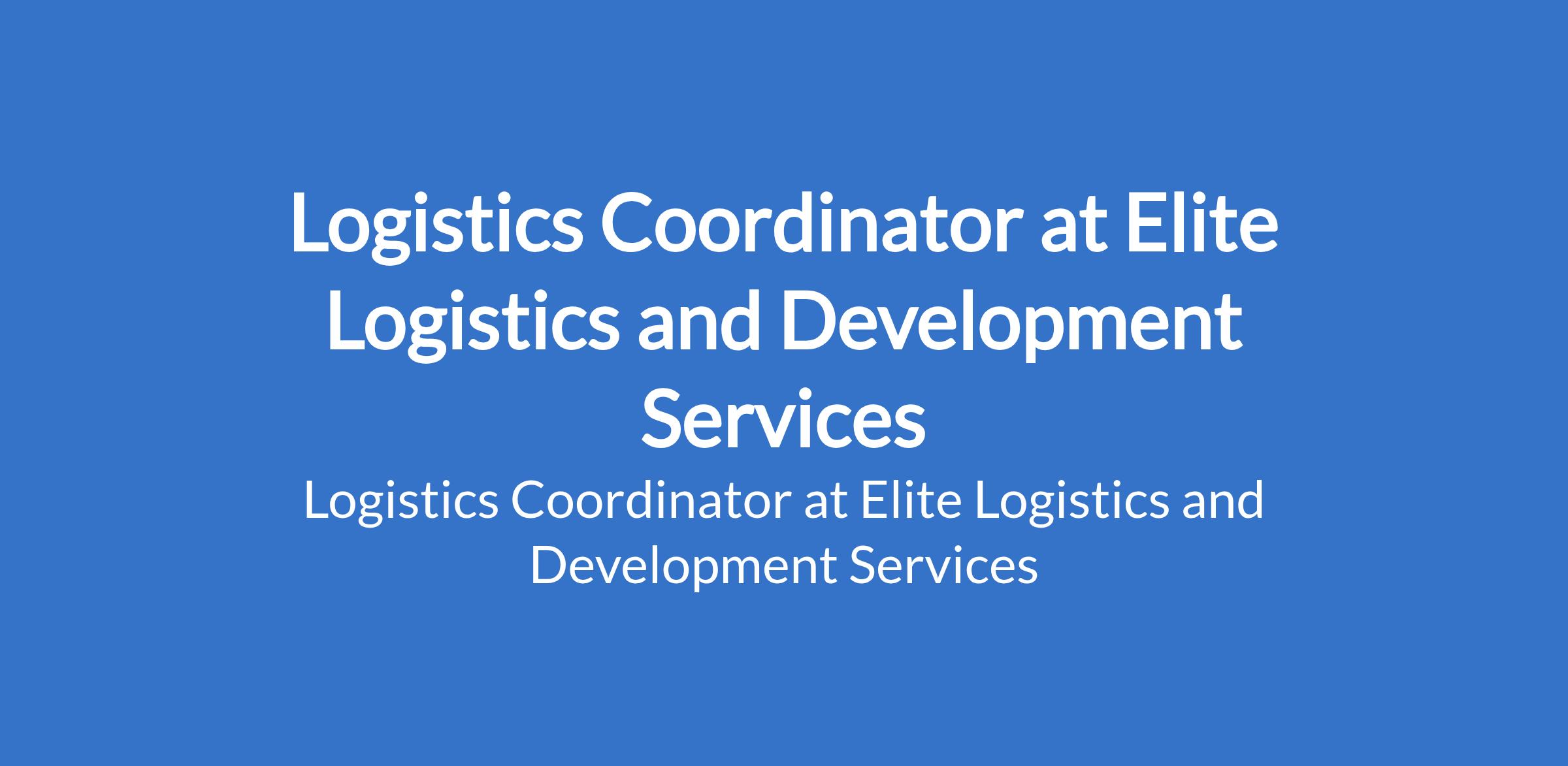 Elite Logistics and Development Services is recruiting to fill the position of: Logistics Coordinator. The position is located in Lagos State. Salary: N120,000 - N180,000 monthly. Interested candidates should possess a BSc/BA Degree in Business Administration, Supply Chain Management or relevant field with proven experience as logistics coordinator.