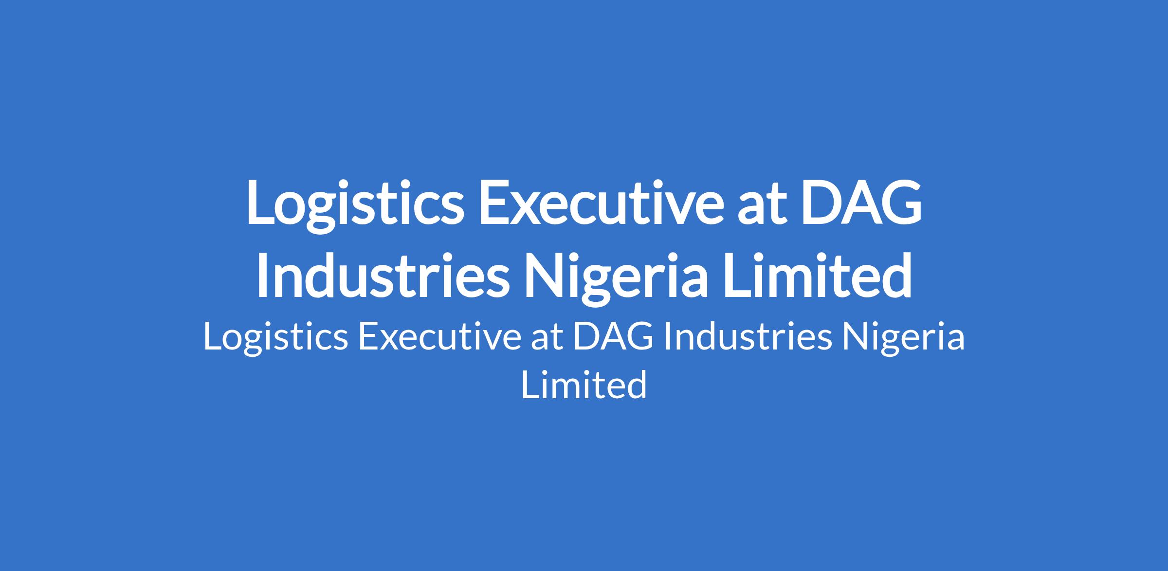 DAG Industries Nigeria Limited is recruiting to fill the position of: Logistics Executive. The position is located in Ikeja, Lagos State. Interested candidates should possess a Bachelors Degree in Logistics, Supply Chain Management, Business Administration, or related fields with 25 years experience in logistics, transportation, or supply chain operations.