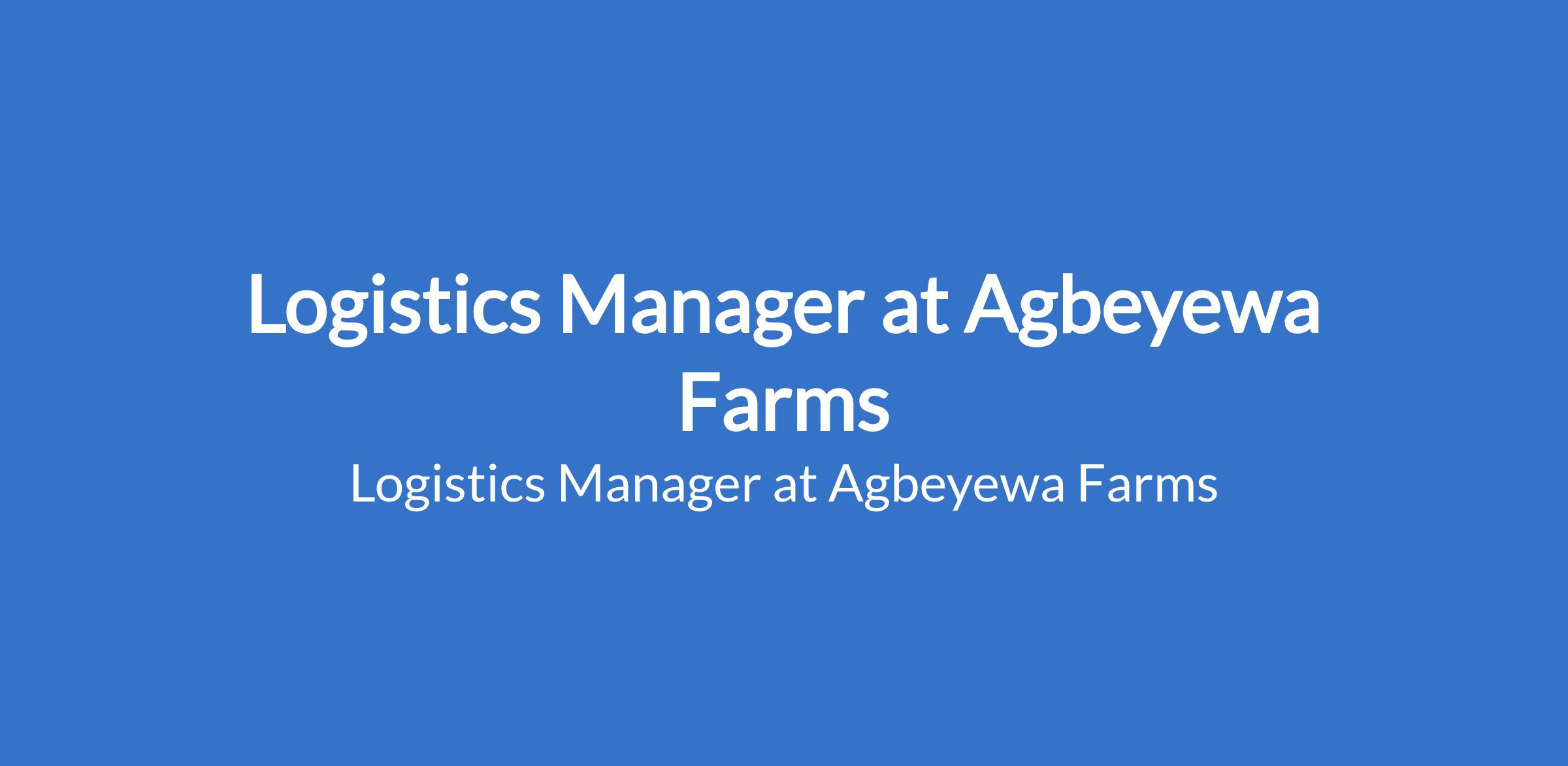 Agbeyewa Farms is recruiting to fill the position of: Logistics Manager. The position is located in Akure, Ondo State. Interested candidates should possess a Bachelors Degree in Supply Chain Management, Logistics, Engineering, Agriculture, or related field with 58 years experience in logistics, supply chain, or operations within manufacturing or agro-processing.