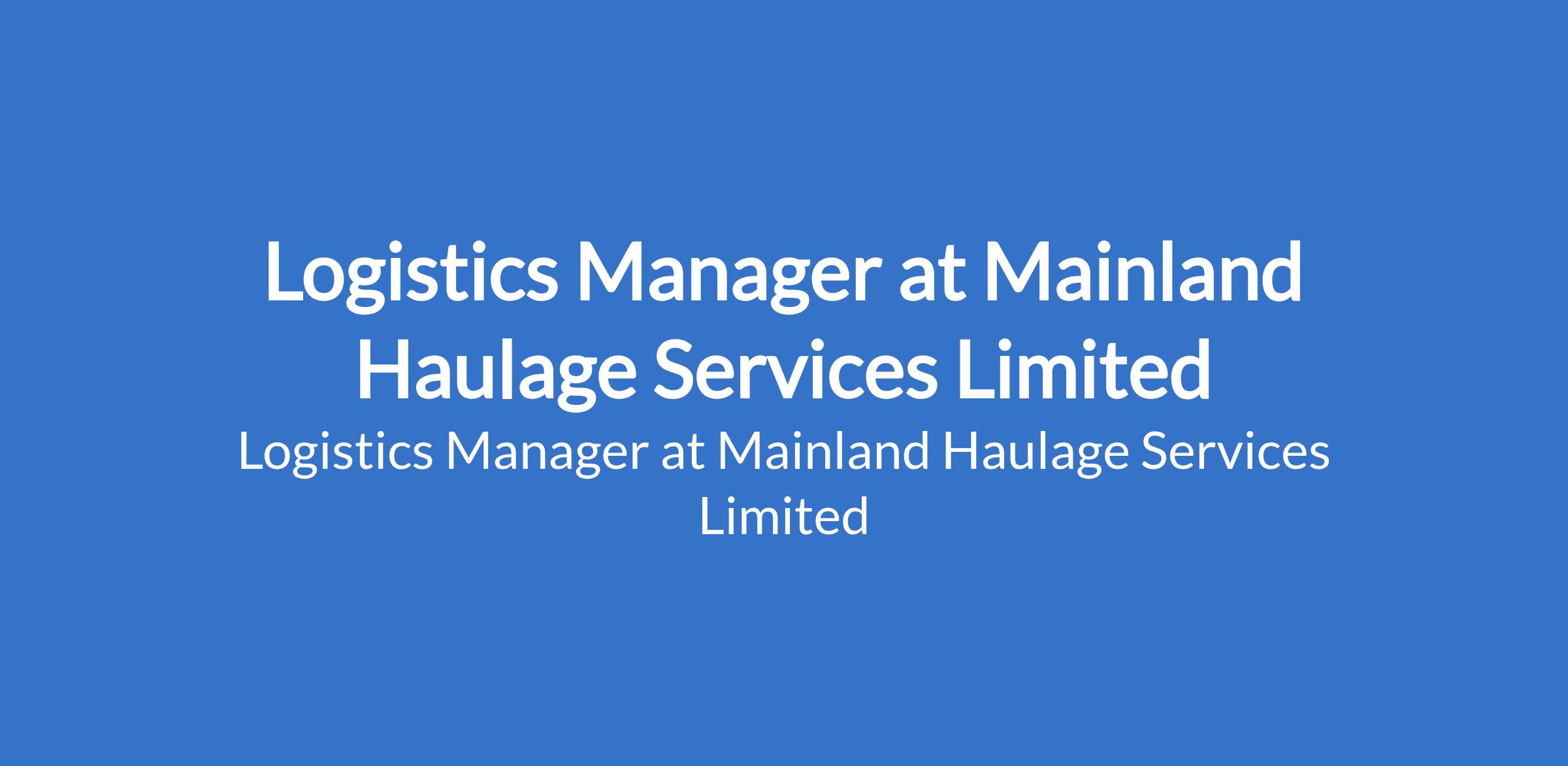 Mainland Haulage Services Limited is recruiting to fill the position of: Logistics Manager. The position is located in Abuja (FCT). Interested candidates should possess a Bachelor's Degree in Logistics, Supply Chain Management, Business Administration, or related fields with 3+ years of logistics management experience.