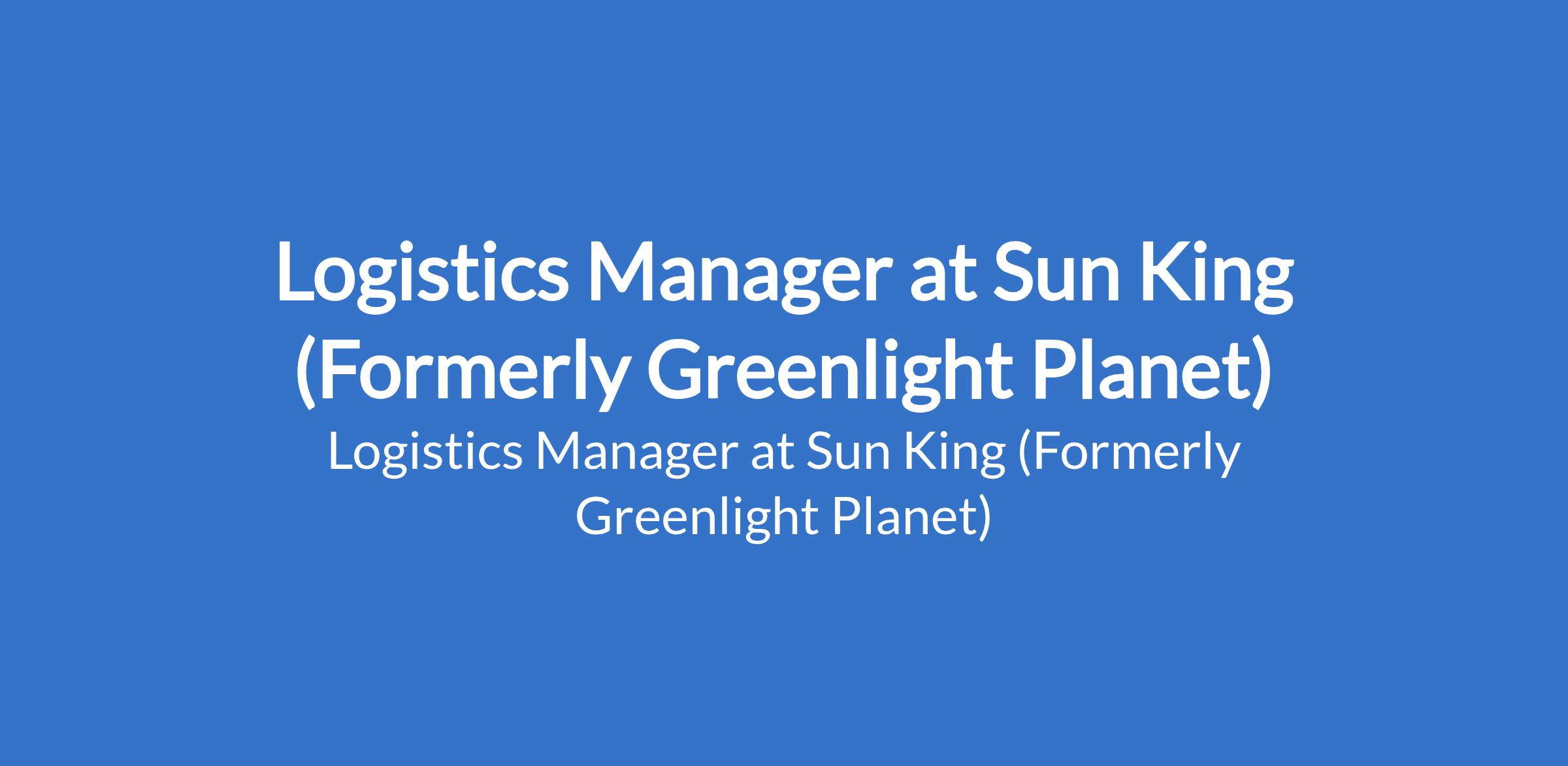 Sun King (Formerly Greenlight Planet) is recruiting to fill the position of: Logistics Manager. The position is located in Lagos State. Interested candidates should possess a Degree in a Business related field; a degree in logistics or transport management will be an added advantage with 7 years experience in logistics management, experience as a middle manager is an advantage.