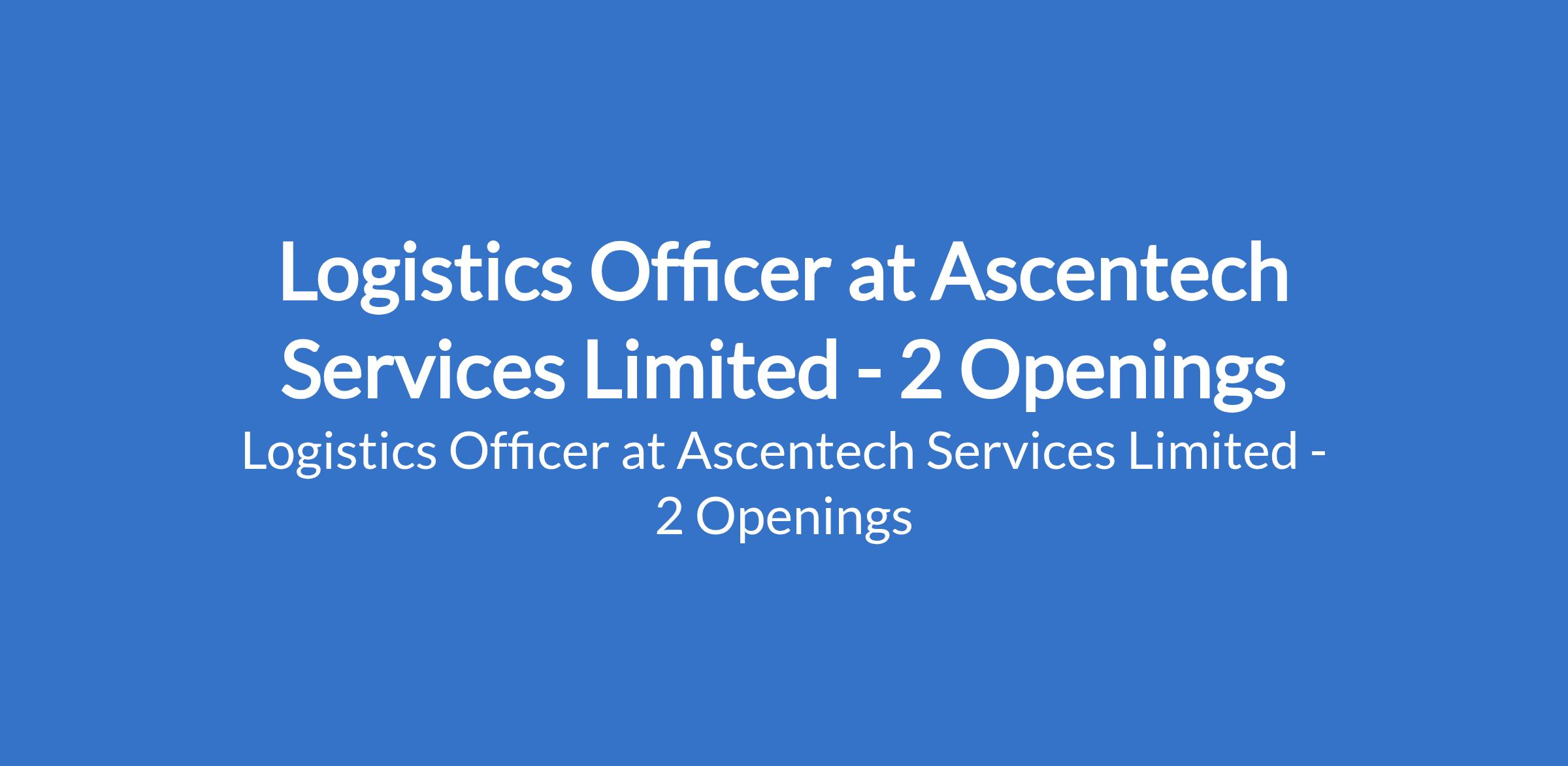 Ascentech Services Limited is recruiting to fill the position of: Logistics Officer. The position is located in Port Harcourt - Rivers and Onitsha - Anambra States. Interested candidates should possess an HND / Bachelors Degree in Logistics, Supply Chain, Business Administration, or related field with 1 2 years of work experience in logistics, transport, or warehouse operations and must be based in, or willing to work in Port Harcourt or Onitsha.