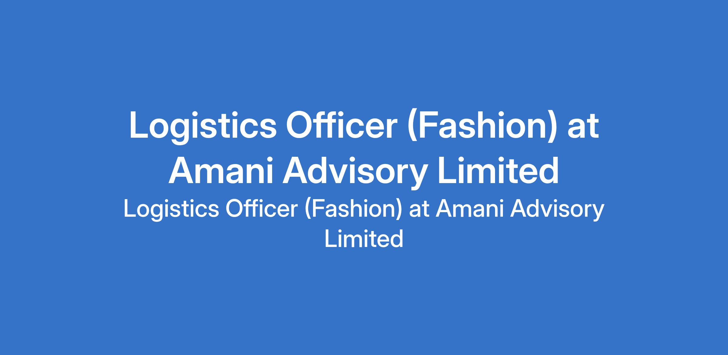 Amani Advisory Limited is recruiting to fill the position of: Logistics Officer (Fashion). The position is located in Lekki, Lagos State. Salary: N150,000 monthly. Interested candidates should possess a Bachelors Degree in Logistics, Business Administration, Public Relations, Mass Communication, or a related field with 23 years experience in logistics, supply chain, or operations (fashion/retail experience is a plus).