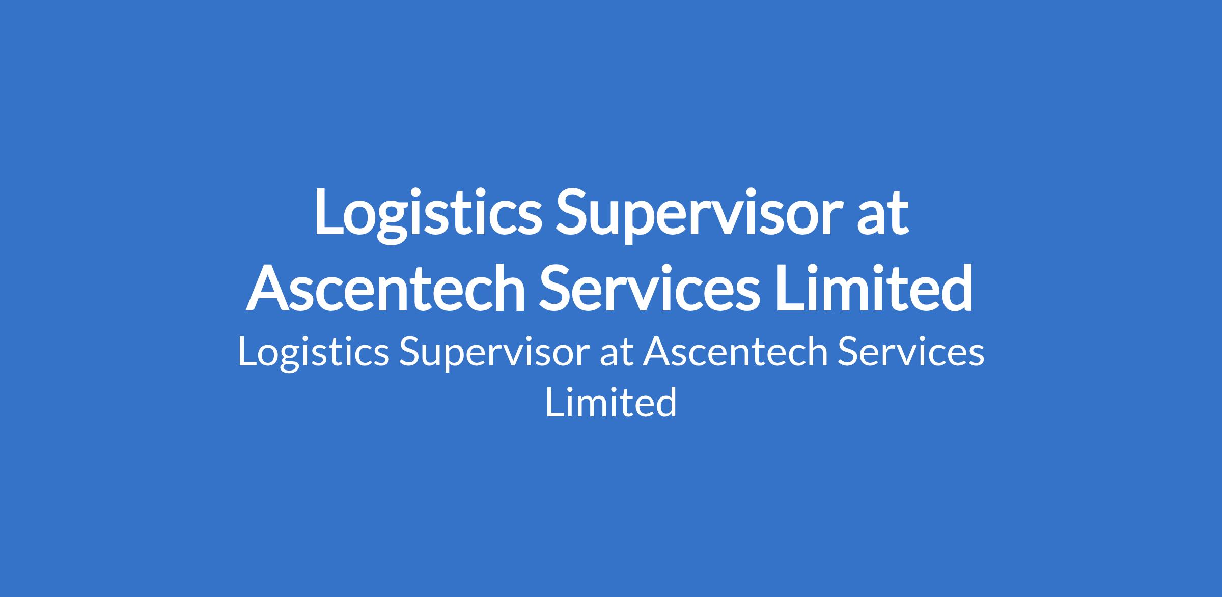 Ascentech Services Limited is recruiting to fill the position of: Logistics Supervisor. The position is located in Isolo, Lagos State. Salary: N200,000 / month. Interested candidates should possess HND/BSc. in Logistics, Supply Chain Management, Business Administration, or a related field with a minimum of 3 4 years experience in logistics or supply chain operations.