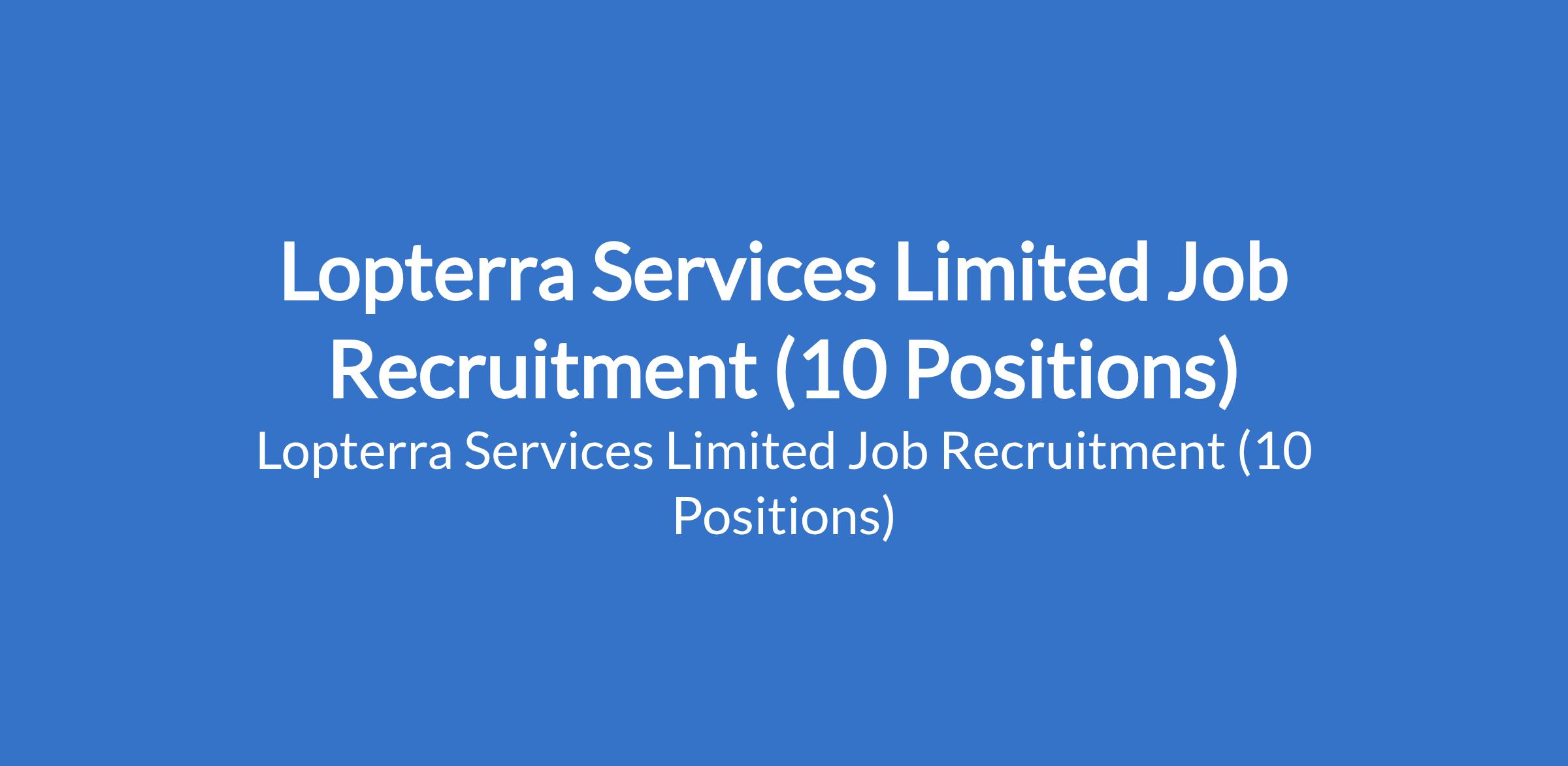 Lopterra Services Limited is recruiting suitably qualified candidates to fill the following positions in Lagos State: Junior Accountant, Digital Marketer, Social Media Marketing Officer, Sales Manager, Communications Officer, Office / Admin Support Personnel, E-Marketing Officer, Human Resources Officer, Driver, and Brand Representative Officer.