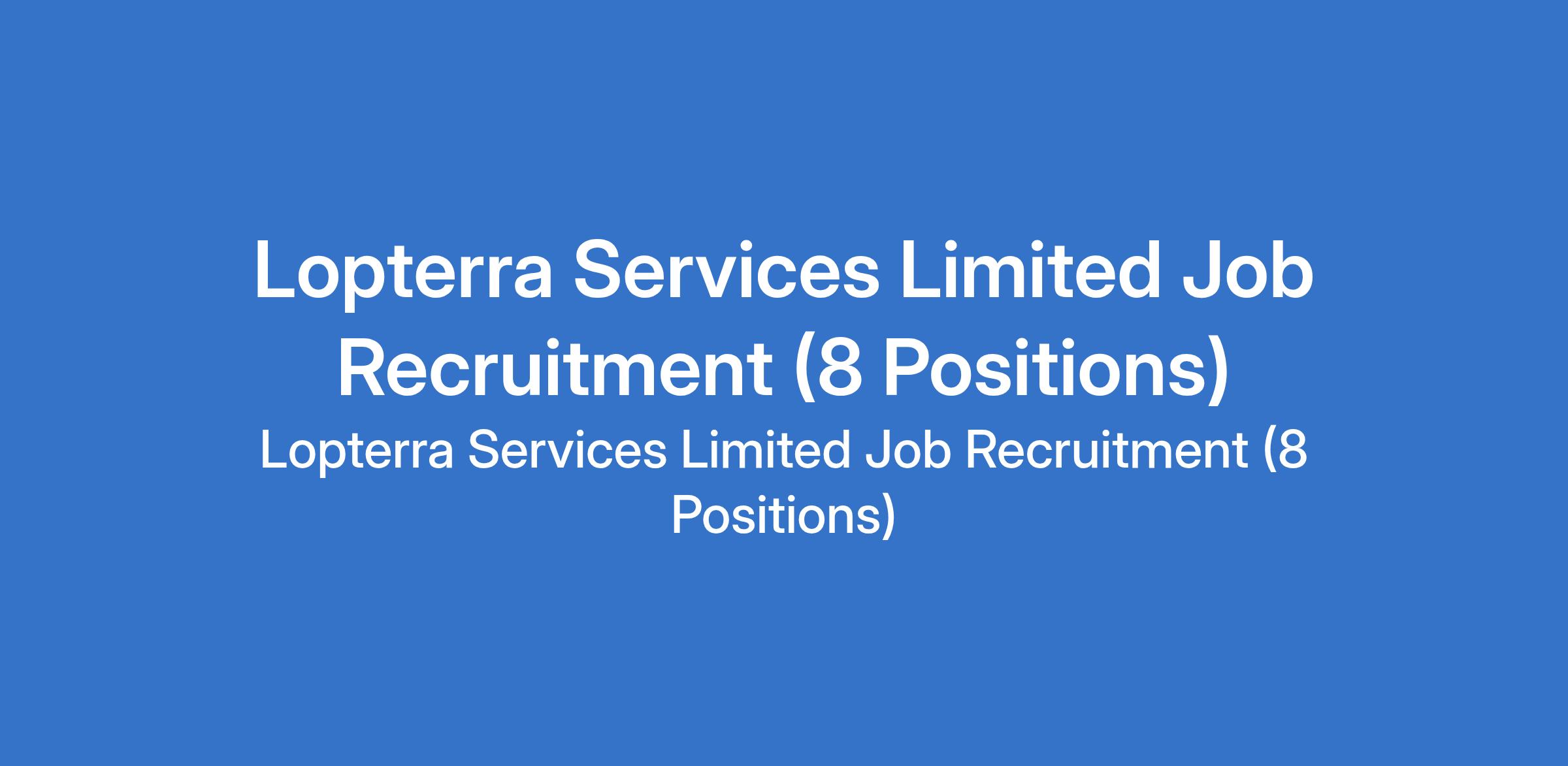 Lopterra Services Limited is recruiting suitably qualified candidates to fill the following positions in Abuja and Lagos State: Account Officer, Brand Representative Officer, Social Media Officer / Content Creator, Research and Policy Lead, Office / Admin Support Personnel, E-Marketing Officer, Human Resources Officer, and Driver.