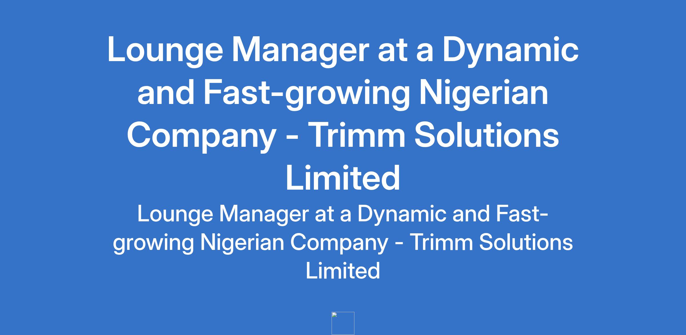 Trimm Solutions Limited - Our client, a dynamic and fast-growing Nigerian company is recruiting to fill the position of: Lounge Manager. The position is located in Lagos State. Salary: N800,000 - N1,000,000 monthly. Interested candidates should possess an HND / B.Sc Degree in Hospitality or Business (for luxury venues) with 6 10 years of experience managing a high-end restaurant.