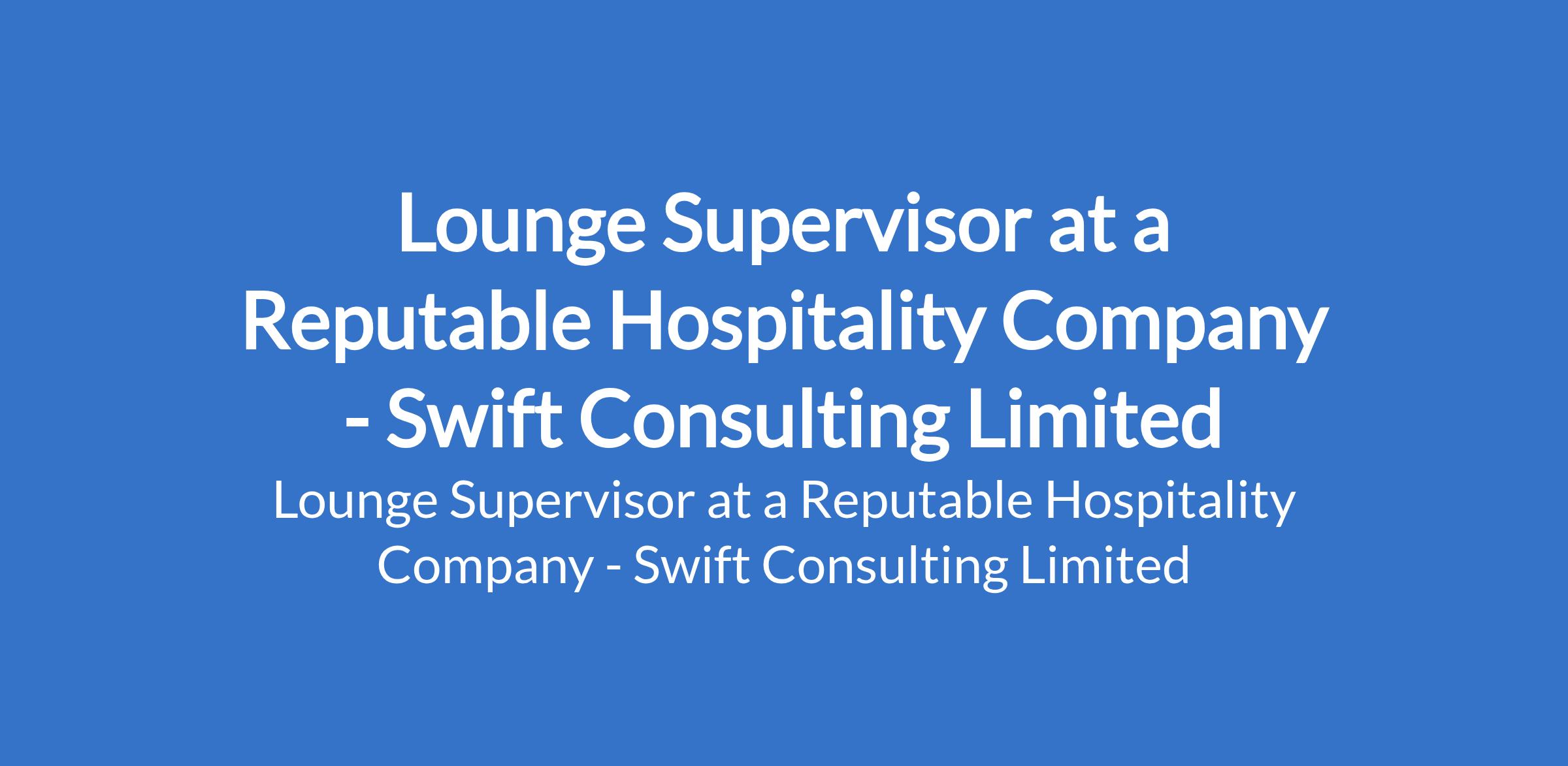 Swift Consulting Limited - Our client in the hospitality industry is recruiting to fill the position of: Lounge Supervisor. The position is located in Ogba, Lagos State. Interested candidates should possess an HND/BSc in any relevant field (compulsory) with 1-3 years experience.