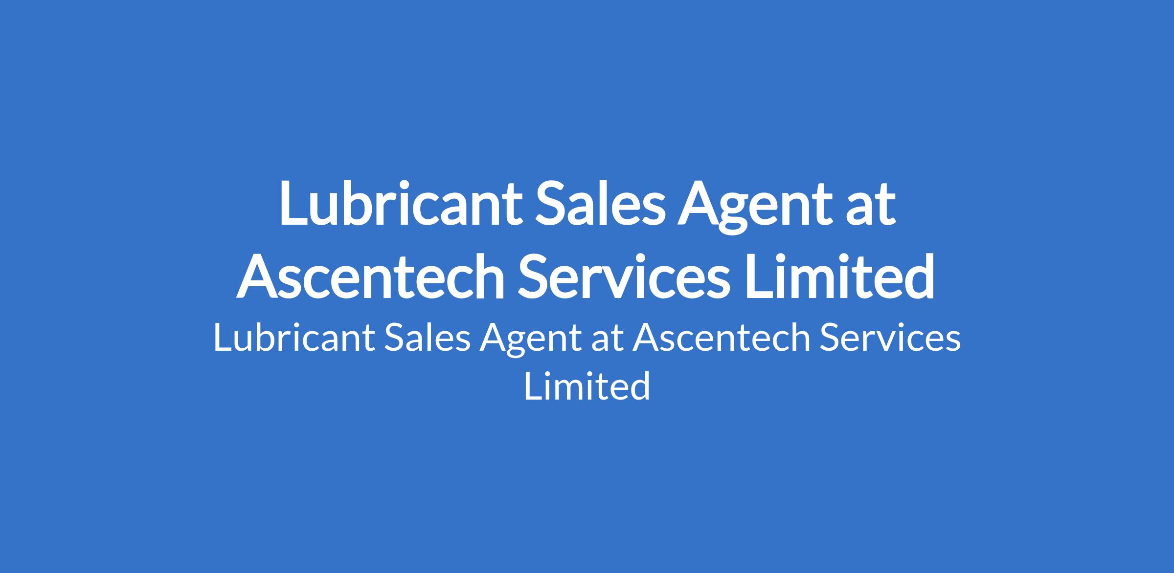Ascentech Services Limited is recruiting to fill the position of: Lubricant Sales Agent. The position is located in Lagos State. Salary: N100,000 N200,000 monthly. The ideal candidates should have previous sales experience (preferably in lubricants, automotive, or FMCG).