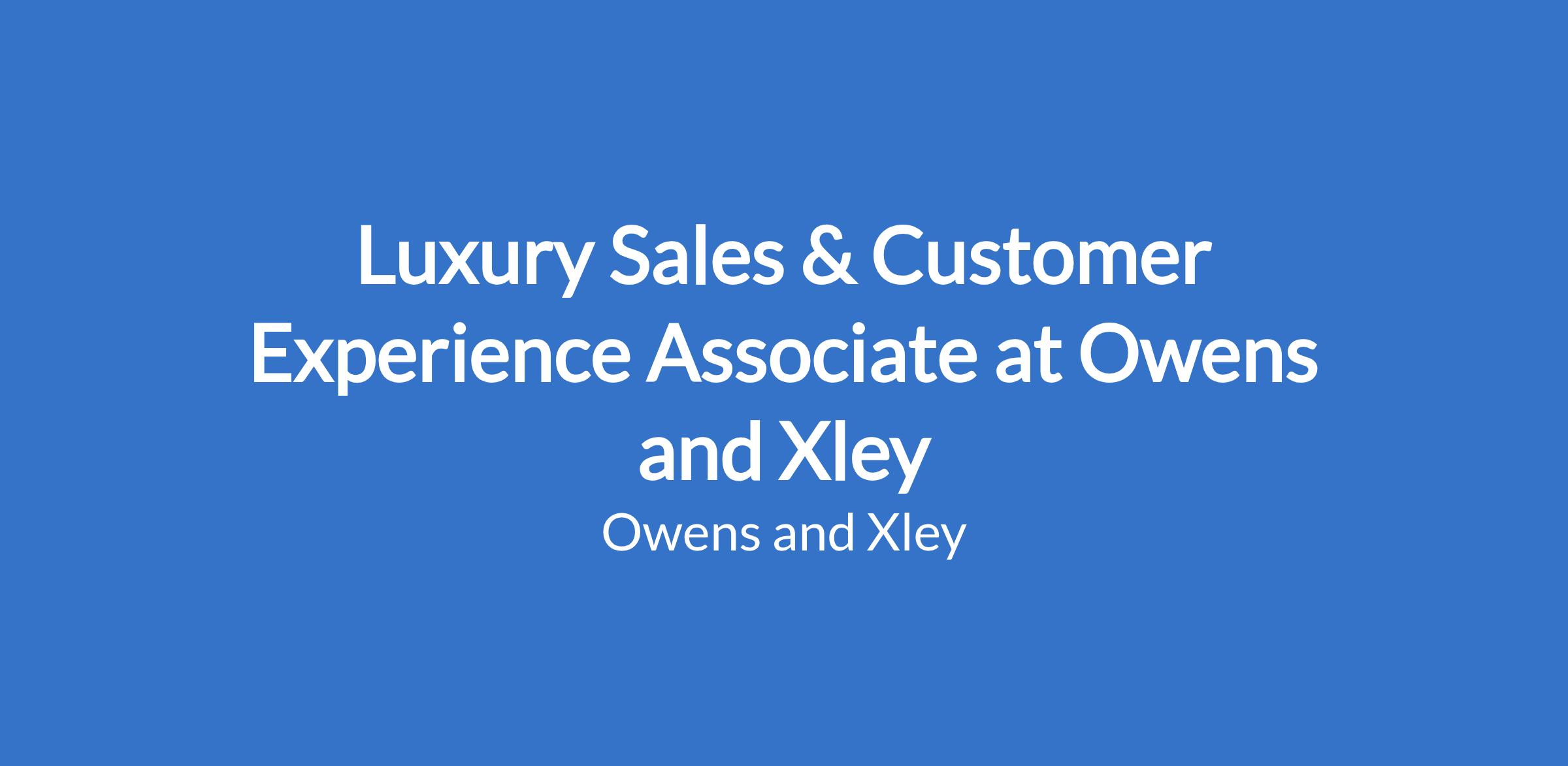 Luxury Sales & Customer Experience Associate at Owens and Xley