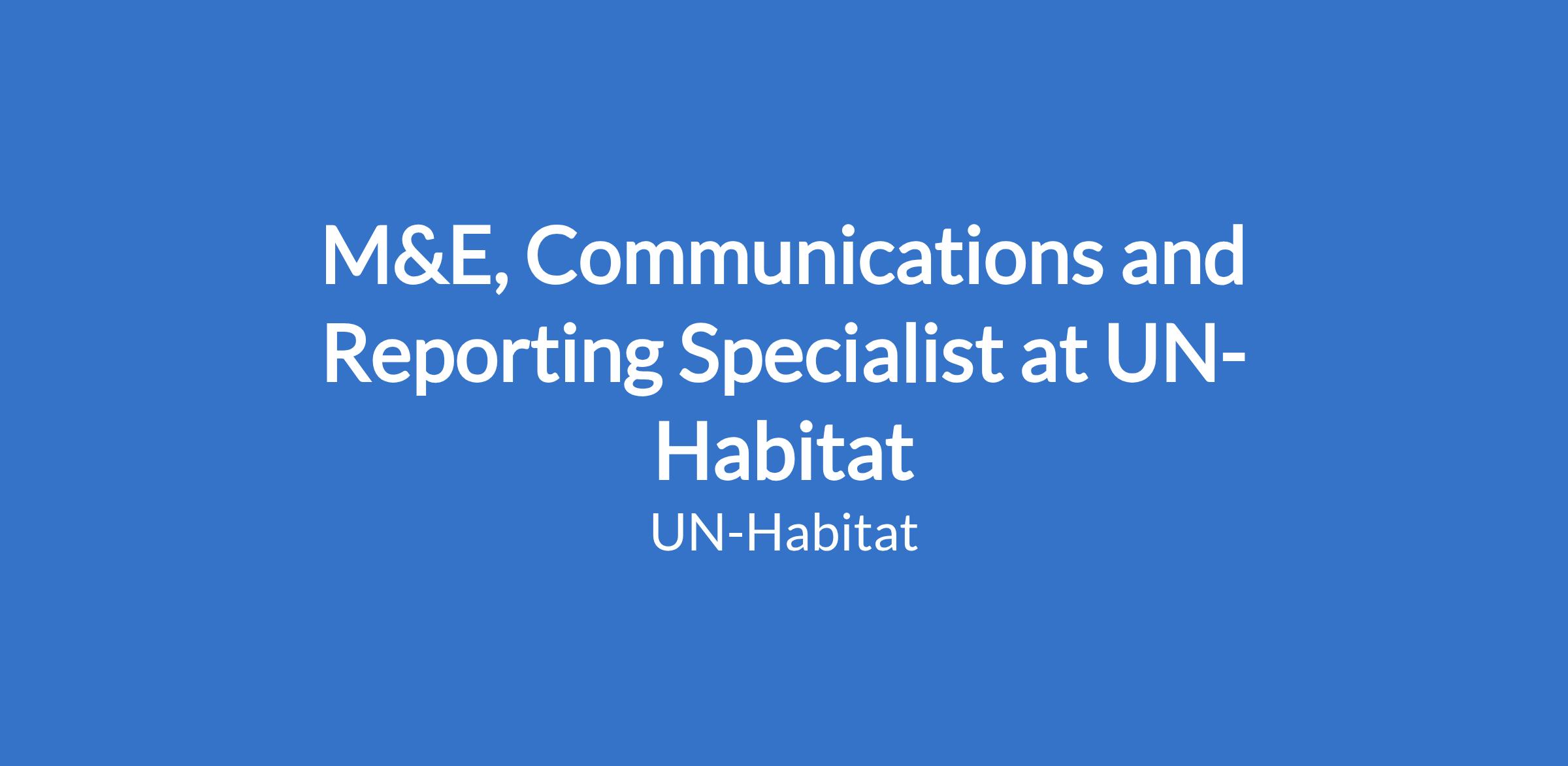 M&E, Communications and Reporting Specialist at UN-Habitat