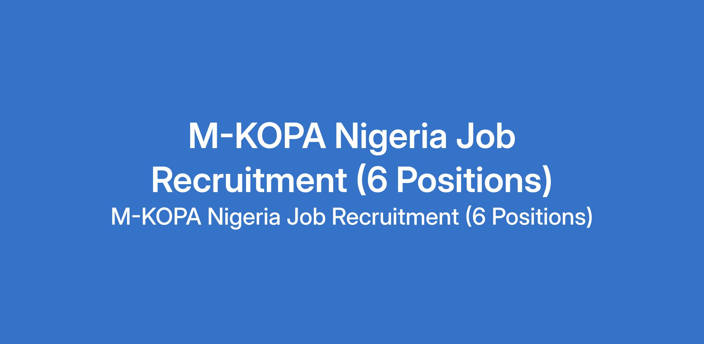 M-KOPA Nigeria is recruiting suitable candidates to fill the following positions in Oyo, Osun, and Lagos States: Warehouse Assistant - Provisioning, Sales Executive, Technical Testing Senior Lead, Senior Product Designer - Retention, and Telesales Representative - Inbound.
