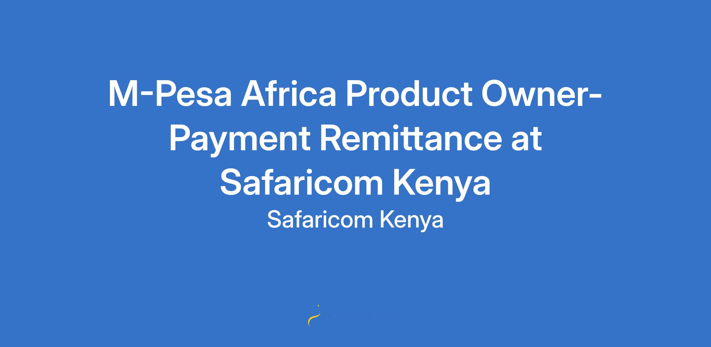 M-Pesa Africa Product Owner- Payment Remittance at Safaricom Kenya