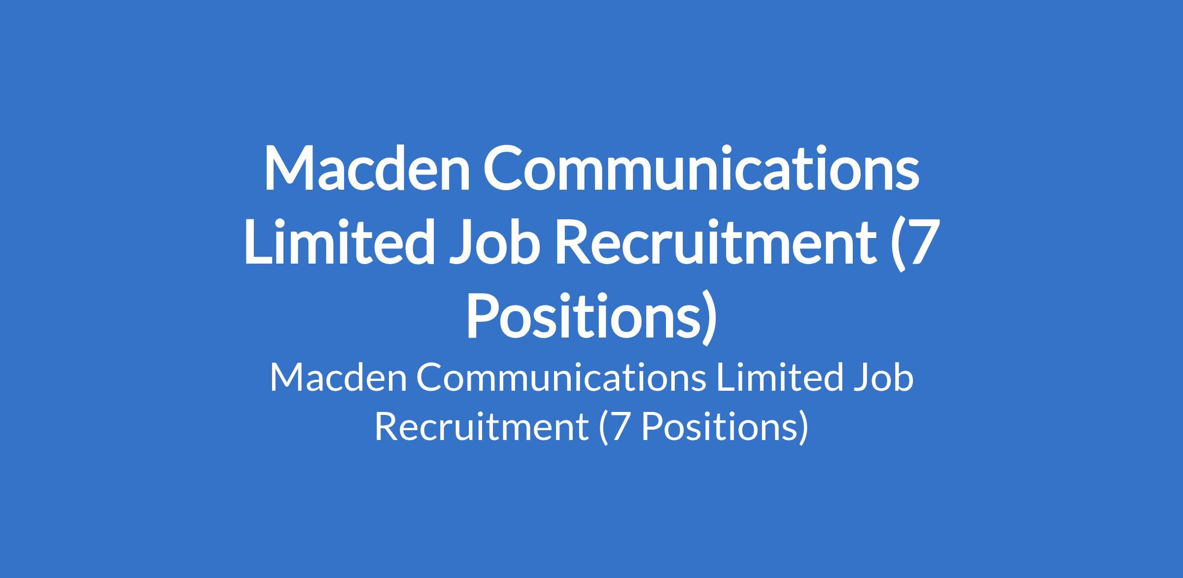 Macden Communications Limited is recruiting suitably qualified candidates to fill the following positions in Lagos, Ogun and Anambra States: Inventory Supervisor, Cashier (Female), Motor Boy / Loader, Driver of Mini Trucks and Vans (Warehouse), Cashier, Invoicer (Female) and Supervisor.