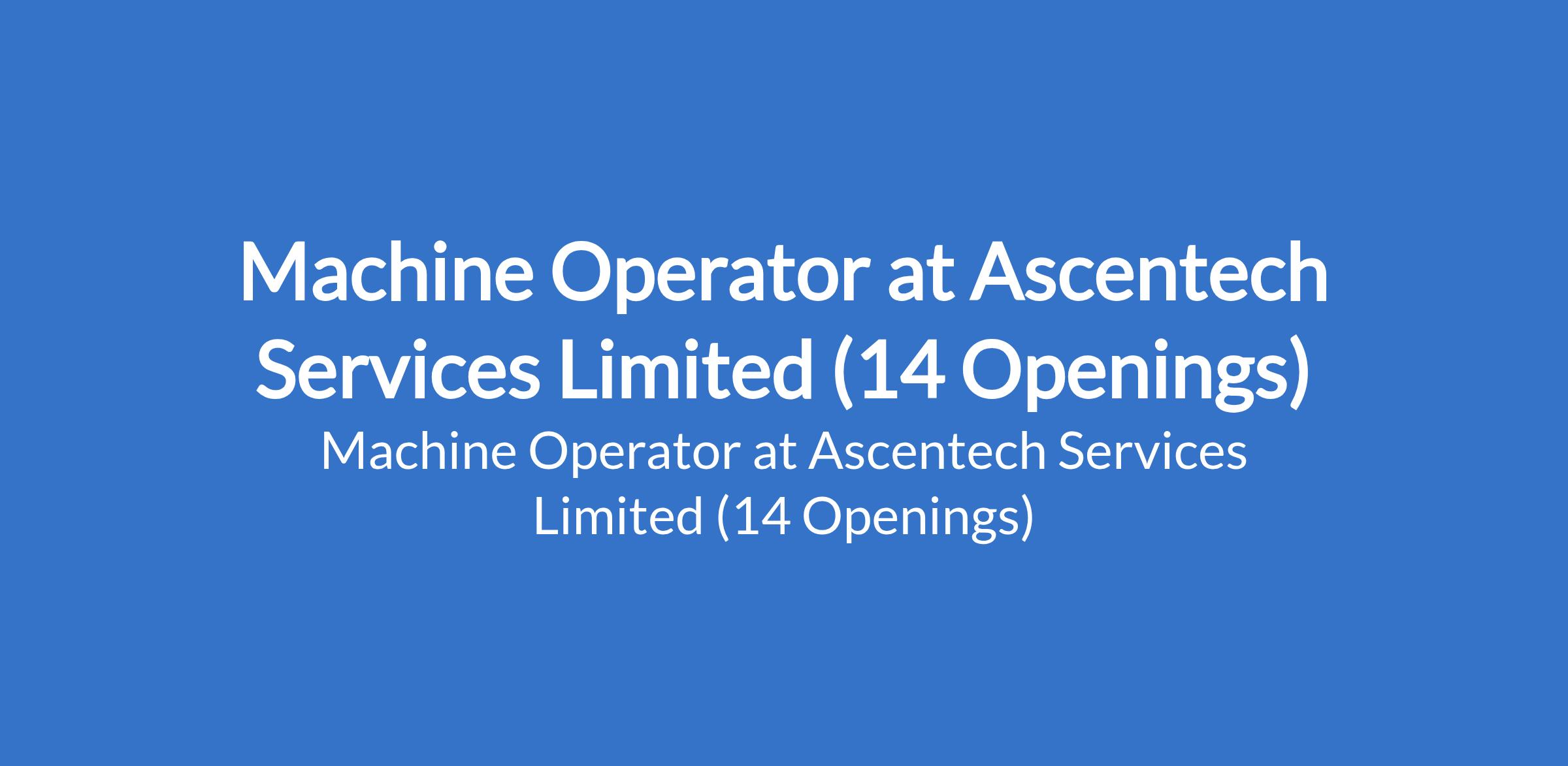 Ascentech Services Limited is recruiting to fill the position of: Machine Operator. The position is located in Lagos State. Interested candidates should possess a relevant qualification with a minimum of 2 years experience as a Machine Operator in a food or FMCG environment.