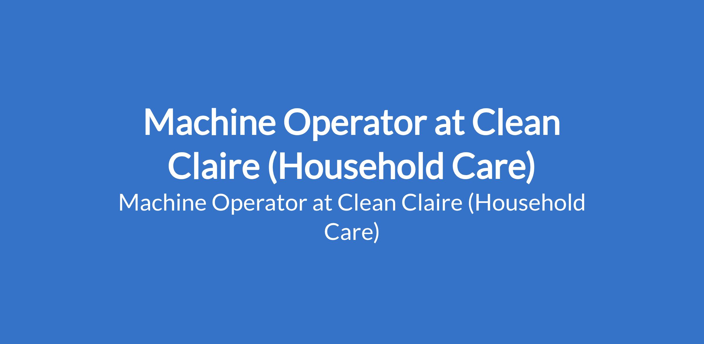 Machine Operator at Clean Claire (Household Care)