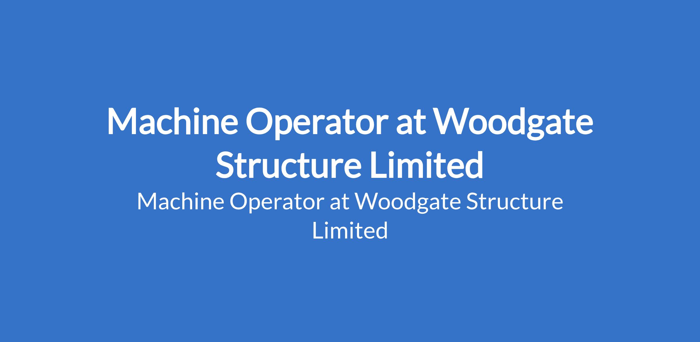 Woodgate Structure Limited is recruiting to fill the position of: Machine Operator. The position is located in Kubwa, Abuja (FCT). Salary: N70,000 - N80,000 per month. Interested candidates should possess relevant qualifications.