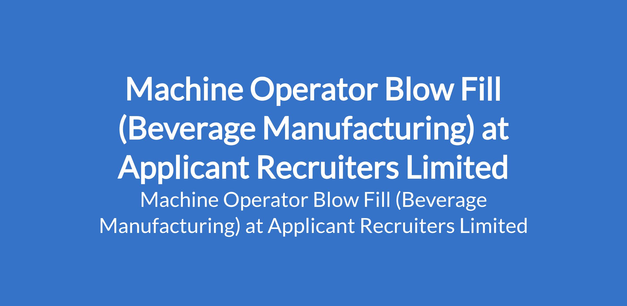 Applicant Recruiters Limited is recruiting to fill the position of: Machine Operator Blow Fill (Beverage Manufacturing). The position is located in Sagamu, Lagos State. Interested candidates should possess a High School Diploma with 1 3 years of blow molding or manufacturing experience preferred (beverage industry experience a plus).