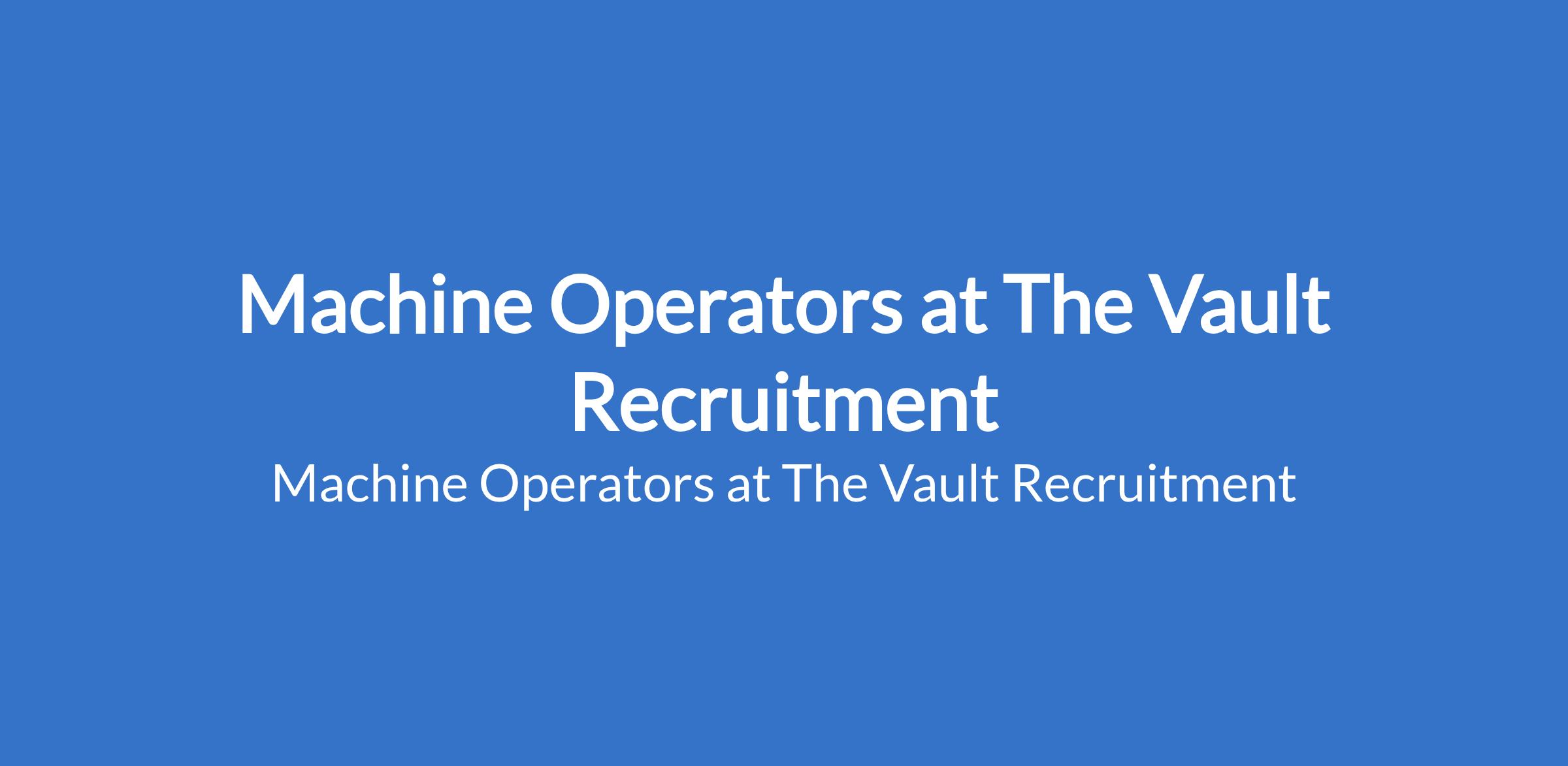 The Vault Recruitment is recruiting to fill the position of: Machine Operator. The position is located in Lagos State. Salary: N80,000 monthly. Interested candidates should possess a minimum of an SSCE or OND qualification.