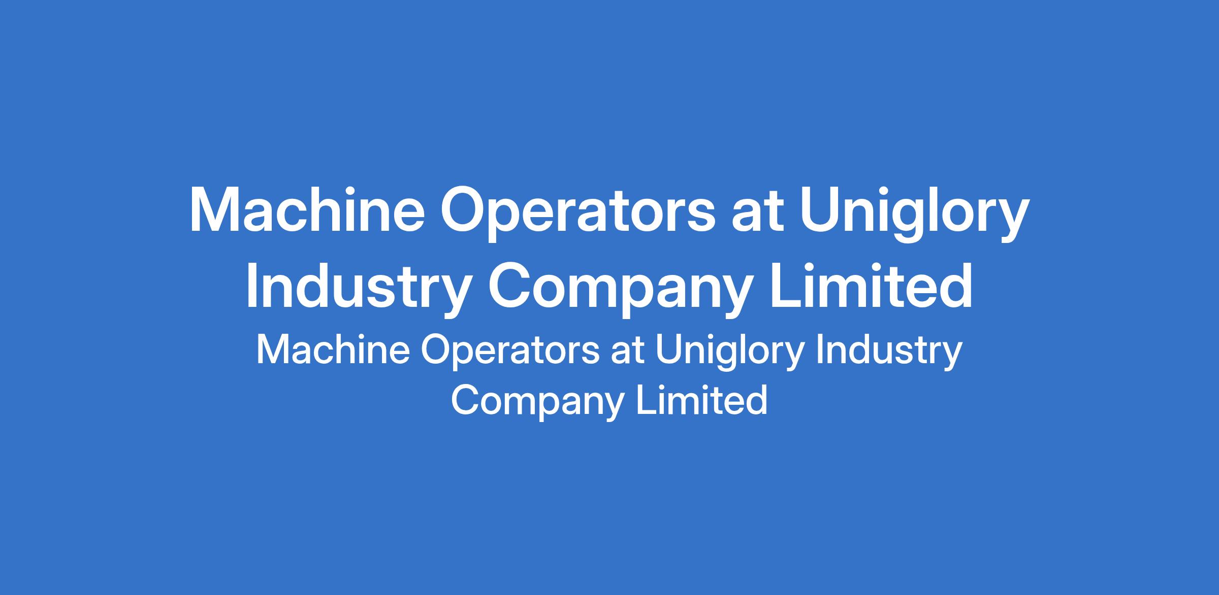 Uniglory Industry Company Limited is recruiting to fill the position of: Machine Operator. The position is located in Ikorodu, Lagos State. Salary: N75,000 - N120,000 monthly. Interested candidates should possess a relevant Degree with strong and professional machine operator.