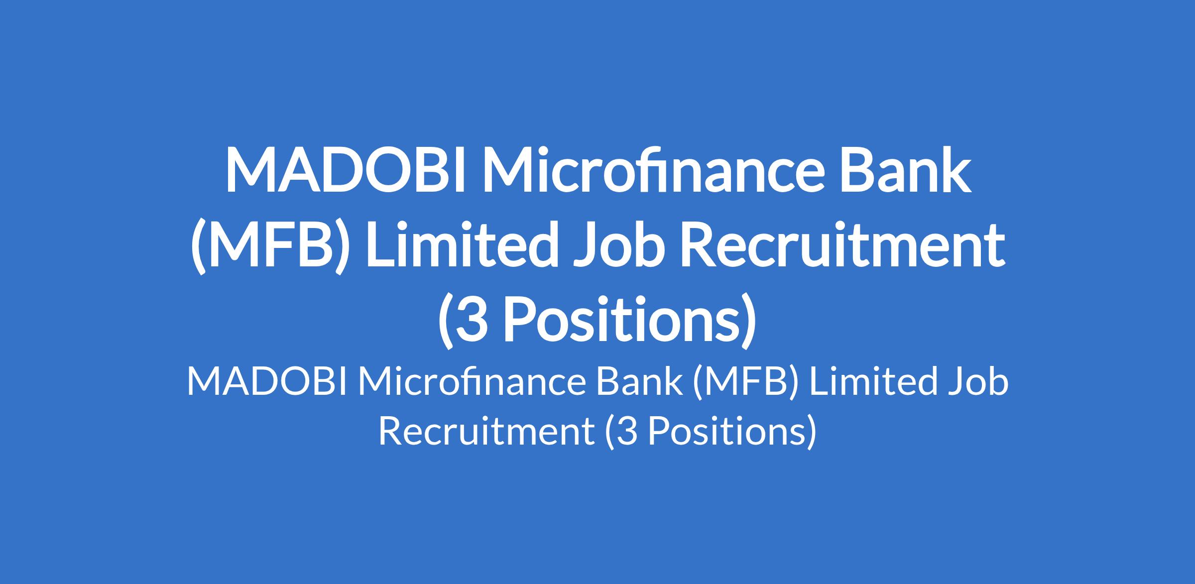 MADOBI Microfinance Bank (MFB) Limited Job Recruitment (3 Positions)