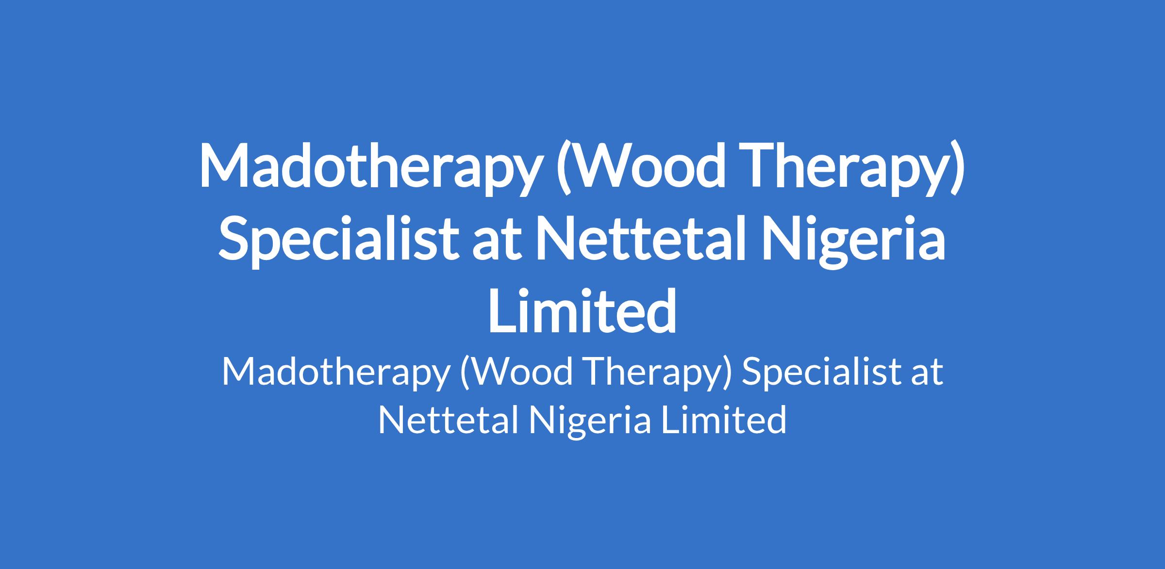 Nettetal Nigeria Limited is recruiting to fill the position of: Madotherapy (Wood Therapy) Specialist. The position is located in Abuja (FCT). Salary: N250,000 - N300,000 per month. Interested candidates should possess a Certified training in Wood Therapy / Maderotherapy with experience in spa, aesthetics, physiotherapy, or wellness clinic.