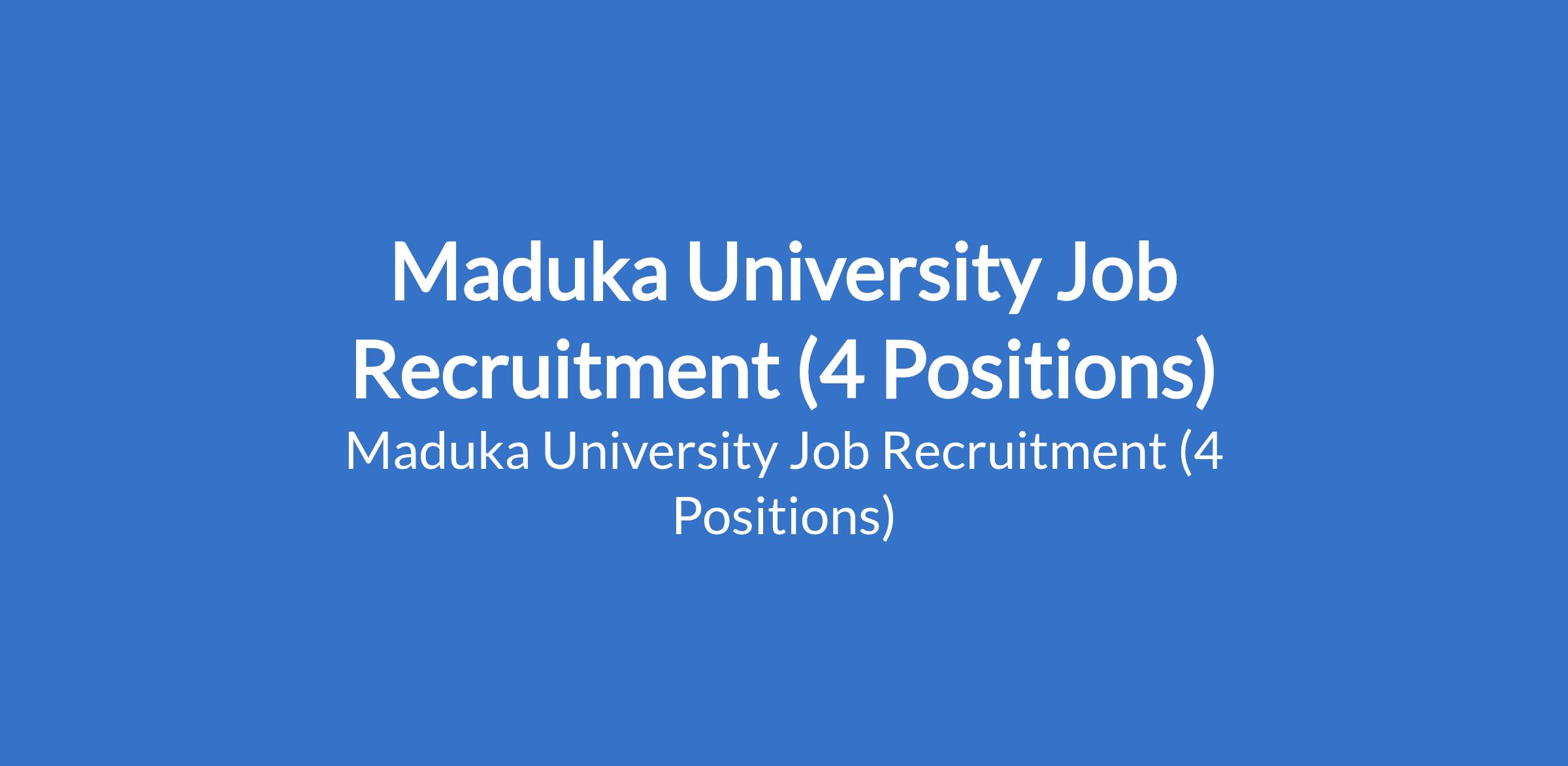 Maduka University Job Recruitment (4 Positions)