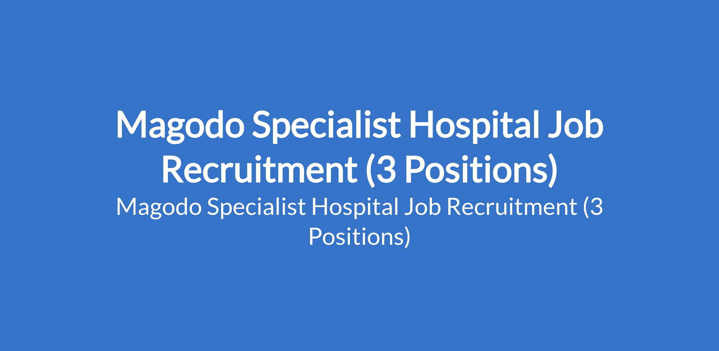 Magodo Specialist Hospital Job Recruitment (3 Positions)