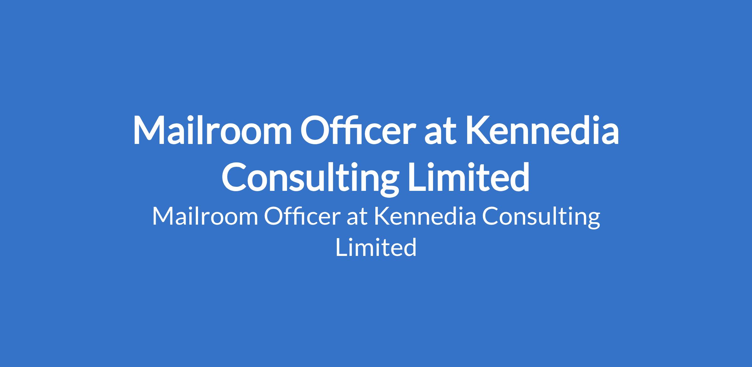 Kennedia Consulting Limited is recruiting to fill the position of: Mailroom Officer. The position is located in Marina, Lagos State. Salary: N150,000 monthly. Interested candidates should possess an HND / BSc Degree (NYSC completed) and must reside clsoe to the job location.