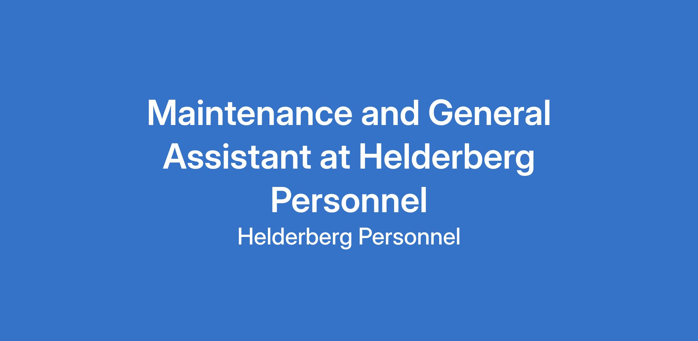 The Maintenance and General Assistant is responsible for the general upkeep, cleanliness and safety of the company's facilities.