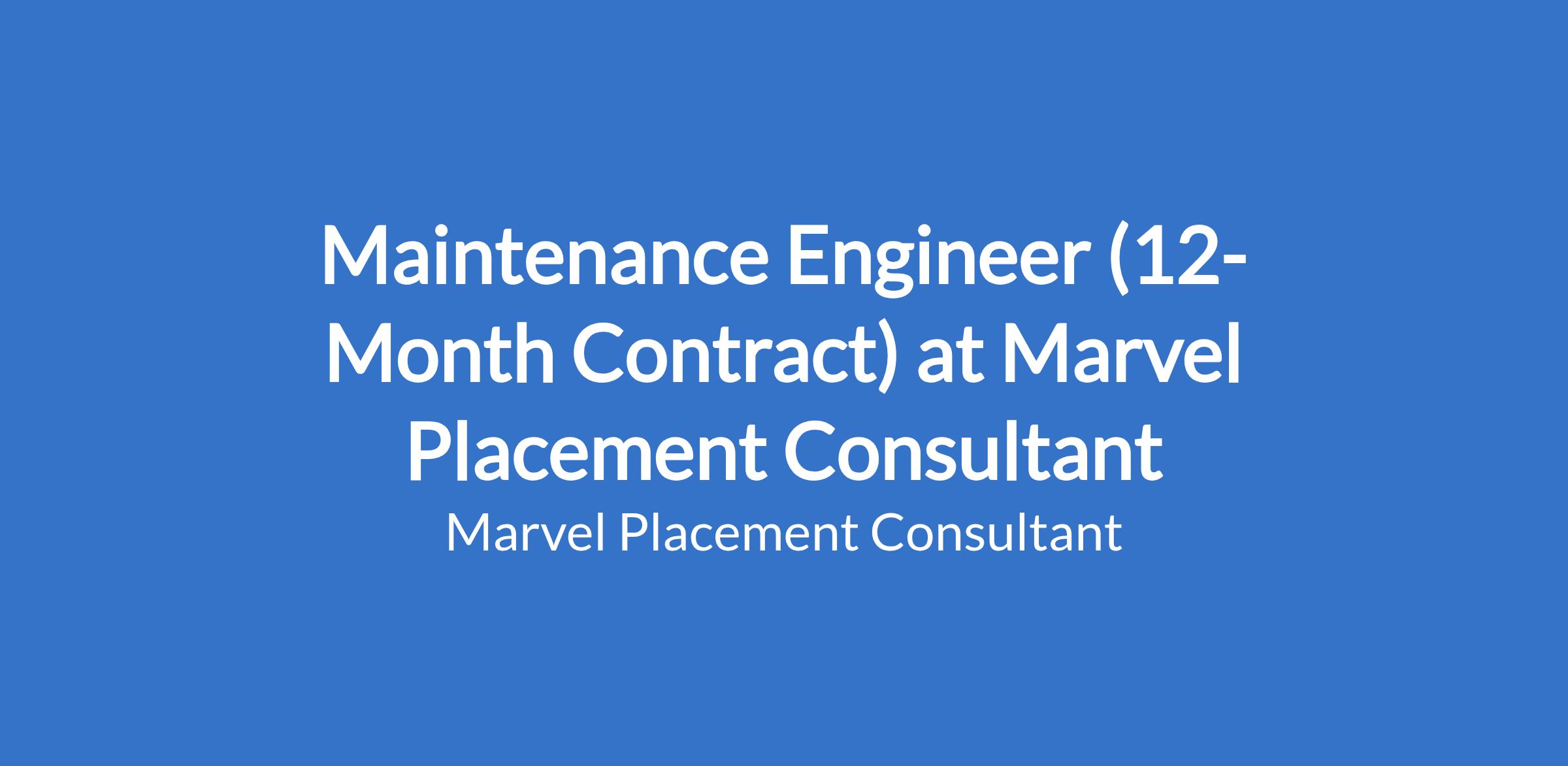 Maintenance Engineer (12-Month Contract)
