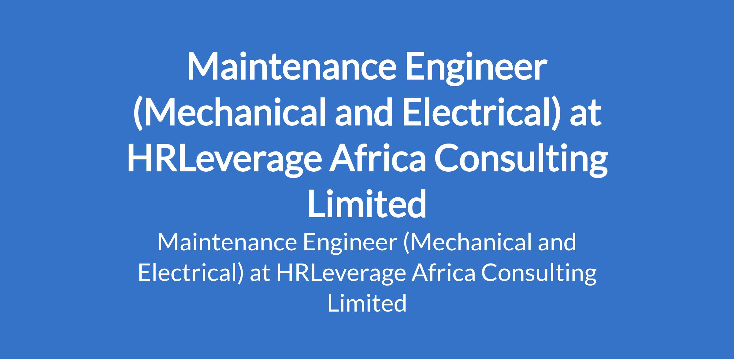 HRLeverage Africa - Our client, a healthcare diagnostic company is recruiting to fill the position of: Maintenance Engineer (Mechanical and Electrical). The position is located in Utako, Abuja (FCT). Interested candidates should possess a Technical certification in Electrical or Mechanical Engineering with a minimum of 3 years relevant experience.