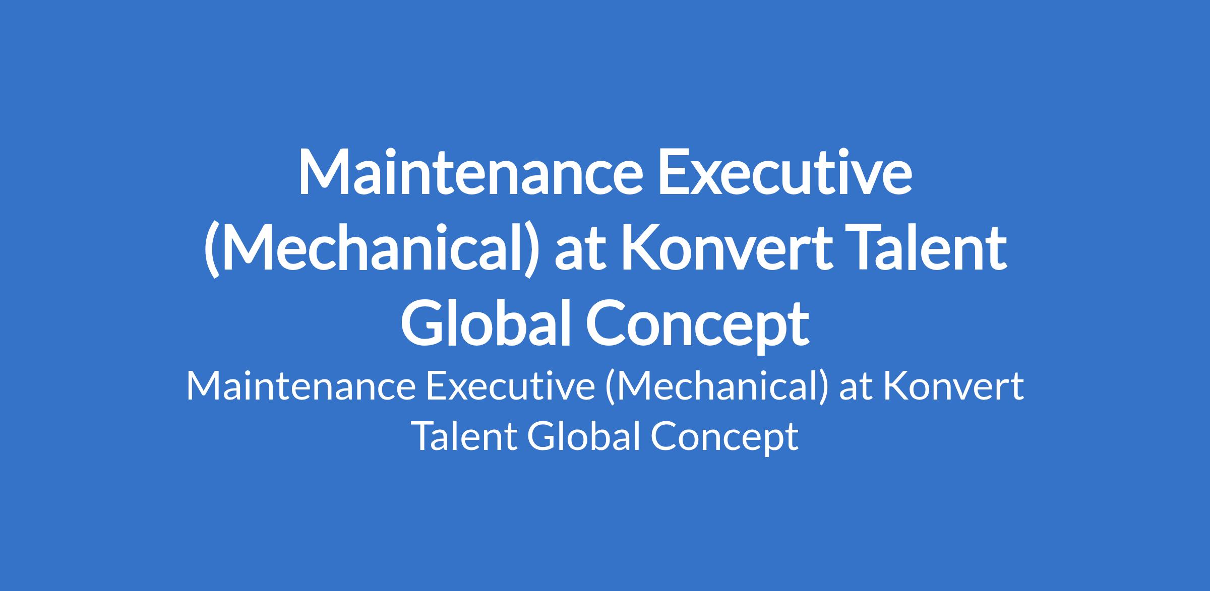 Konvert Talent Global Concept is recruiting to fill the position of: Maintenance Executive (Mechanical). he position is located in Mowe / Ibafo - Ogun State. Interested candidates should possess an OND in Mechanical Engineering or related fields with 35 years hands-on maintenance experience in an agro-industrial plant, preferably soya processing, oil milling, or grain processing.