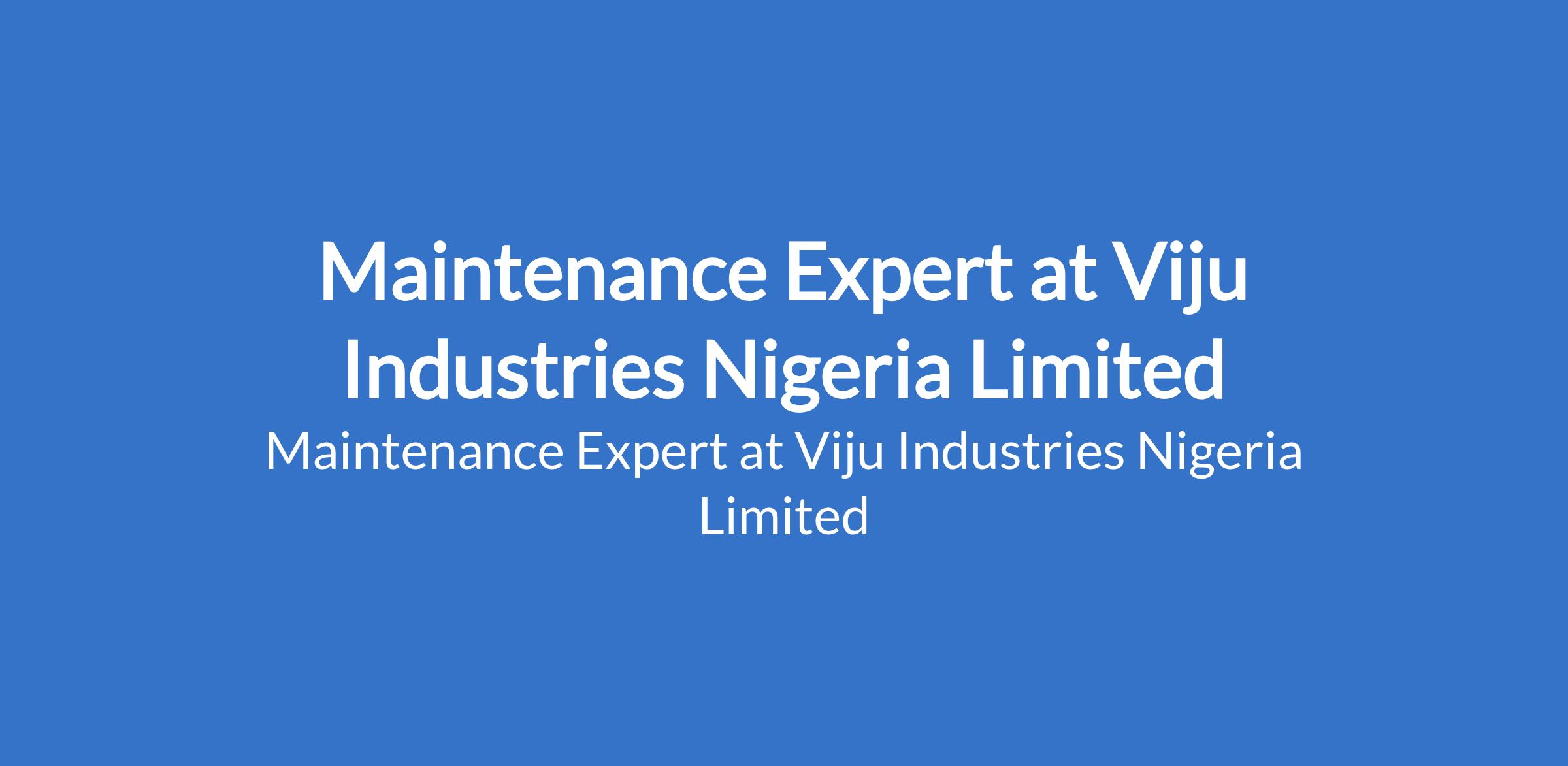 Viju Industries Nigeria Limited is recruiting to fill the position of: Maintenance Expert. The position is located in Ikeja, Lagos State. Salary: N300,000 - N600,000 per month. Interested candidates should possess relevant qualifications with more than five years of relevant work experience.