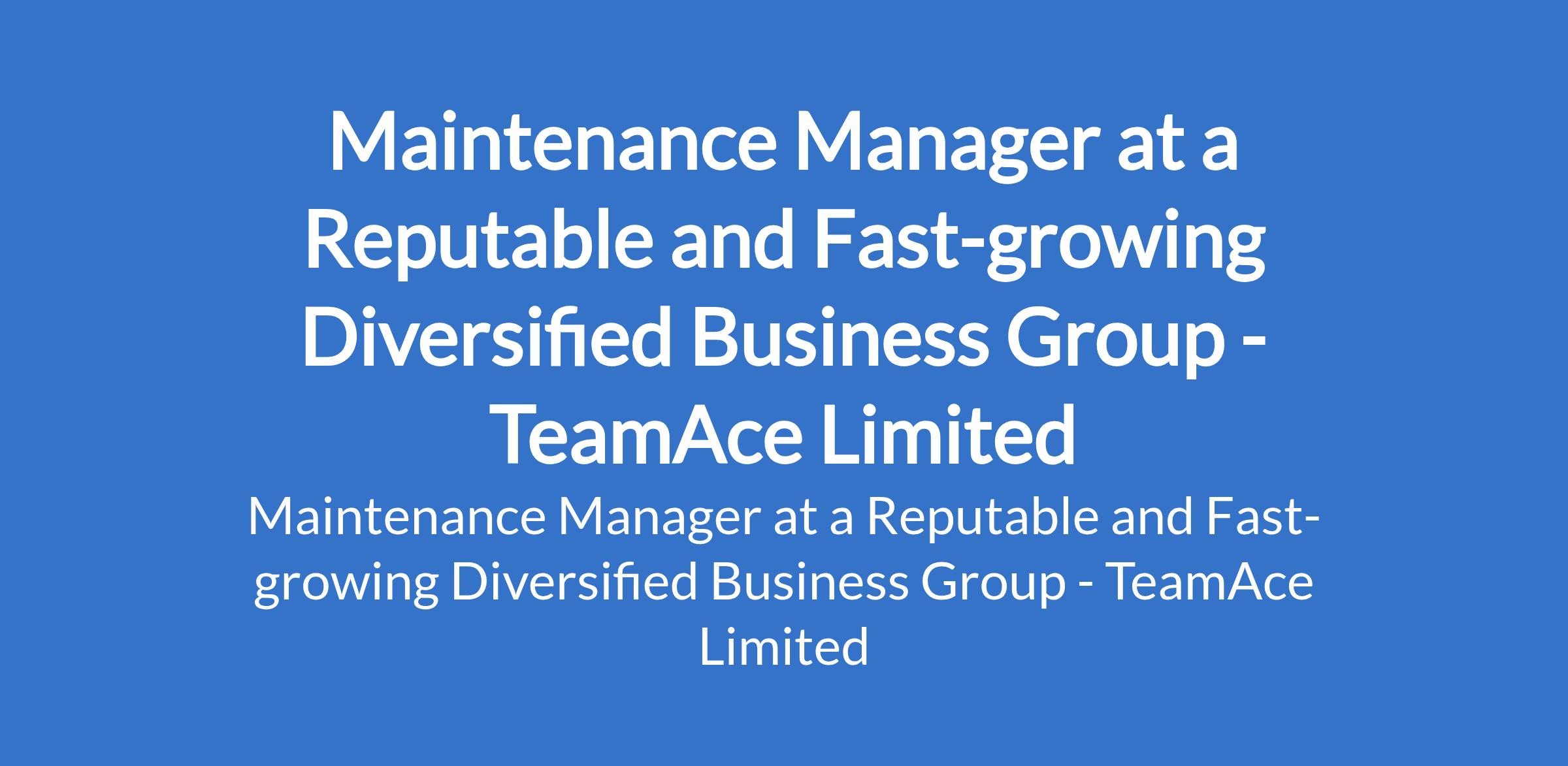 TeamAce Limited - Our client, a reputable and fast-growing diversified business group is recruiting to fill the position of: Maintenance Manager. The position is located in Ikeja, Lagos State. Salary: N450,000 monthly. Interested candidates should possess a Degree or HND qualification in Mechanical, Electrical, or Industrial Engineering with a minimum of 5 years experience in industrial maintenance.