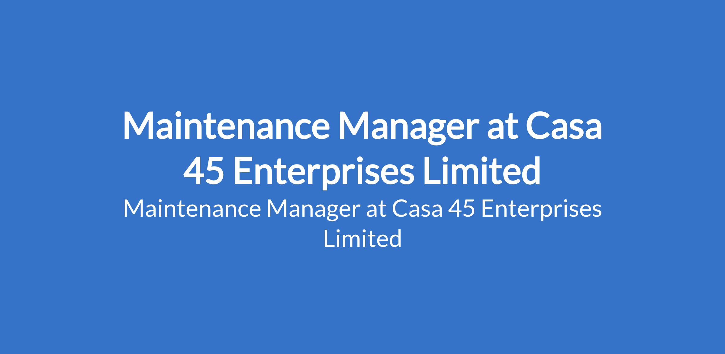 Casa 45 Enterprises Limited is recruiting to fill the position of: Maintenance Manager. The position is located in VI, Lagos State. Salary: N300,000 - N400,000 per month. Interested candidates should possess relevant qualifications with 25 years of experience in maintenance, with supervisory experience preferred.
