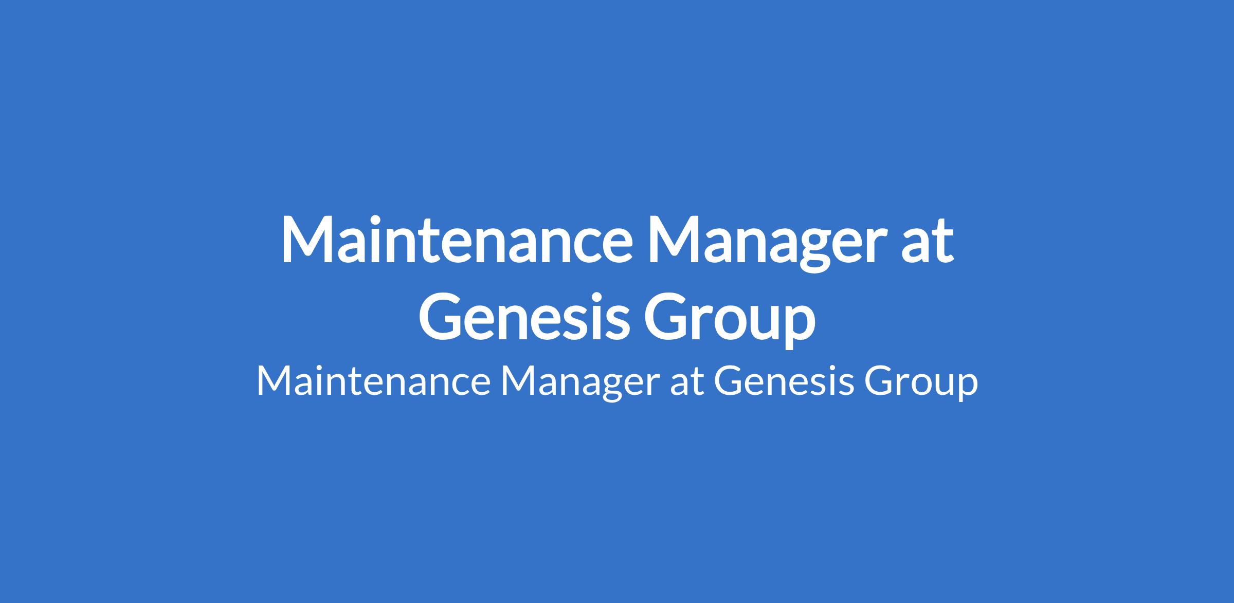 Maintenance Manager at Genesis Group