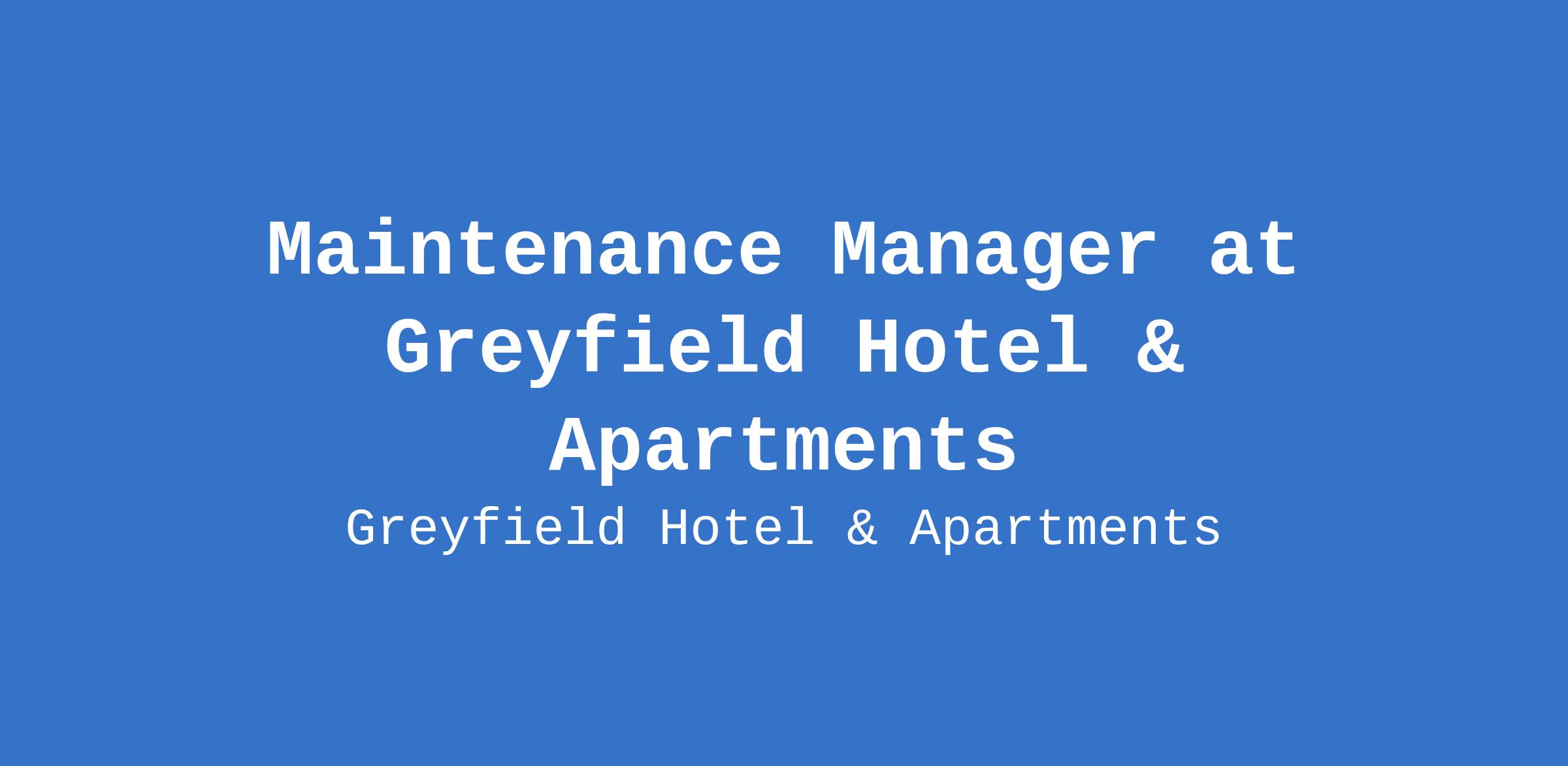 Maintenance Manager at Greyfield Hotel & Apartments