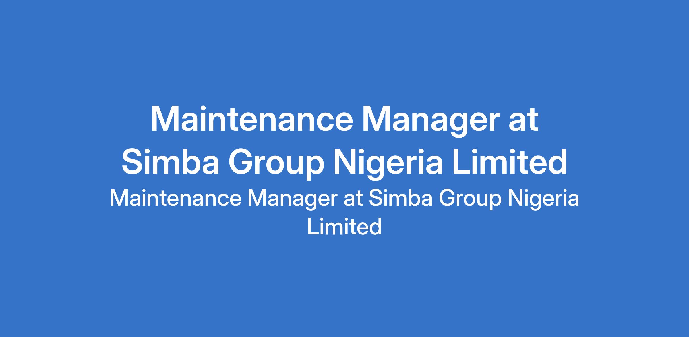Simba Group Nigeria Limited is recruiting to fill the position of: Maintenance Manager. The position is located in Ikeja, Lagos State. Interested candidates should possess a Bachelor's Degree in Mechanical, Electrical or Mechatronics Engineering with 710+ years experience in manufacturing/automotive assembly maintenance