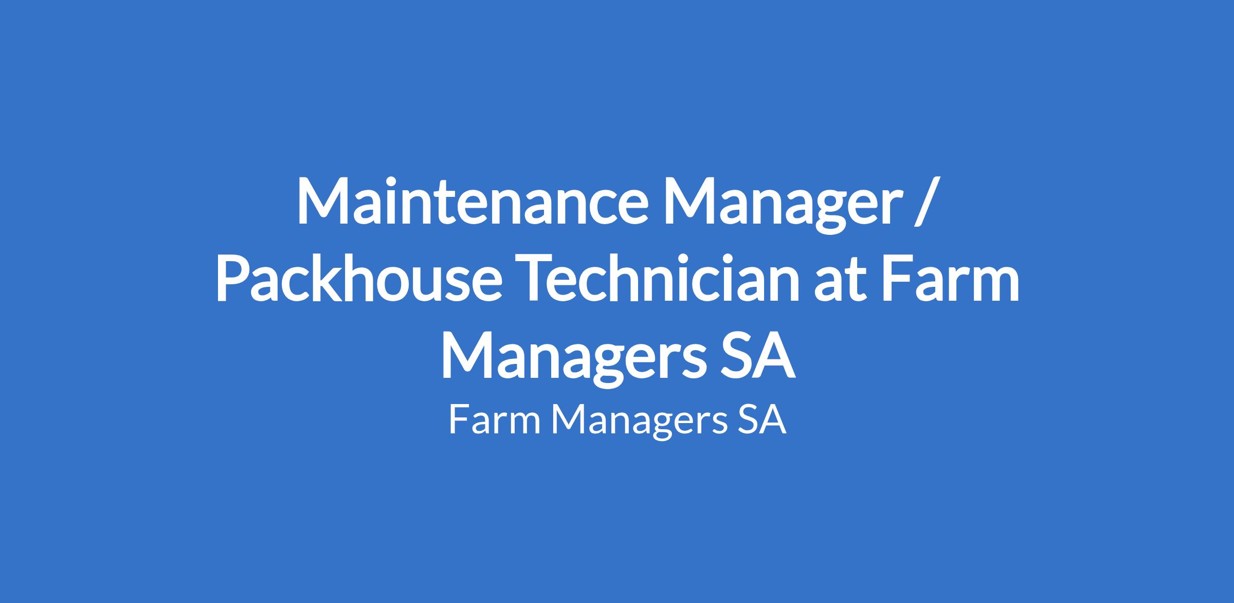 Minimum 3 years' relevant experience in packhouse/food processing maintenance and/or farm maintenance.