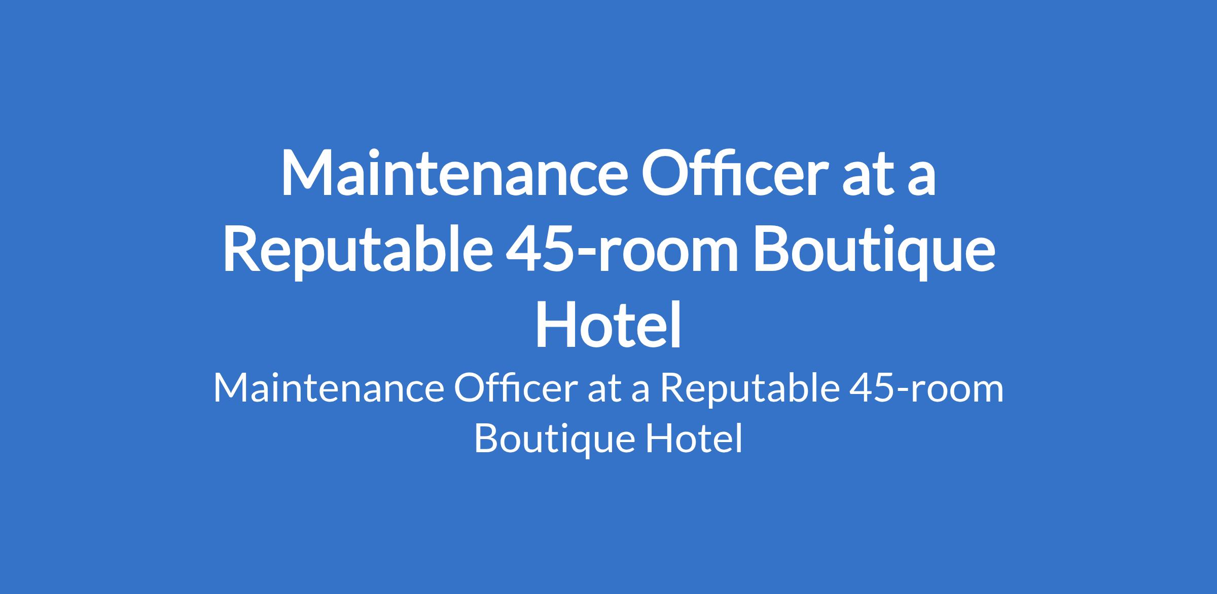 Maintenance Officer at a Reputable 45-room Boutique Hotel