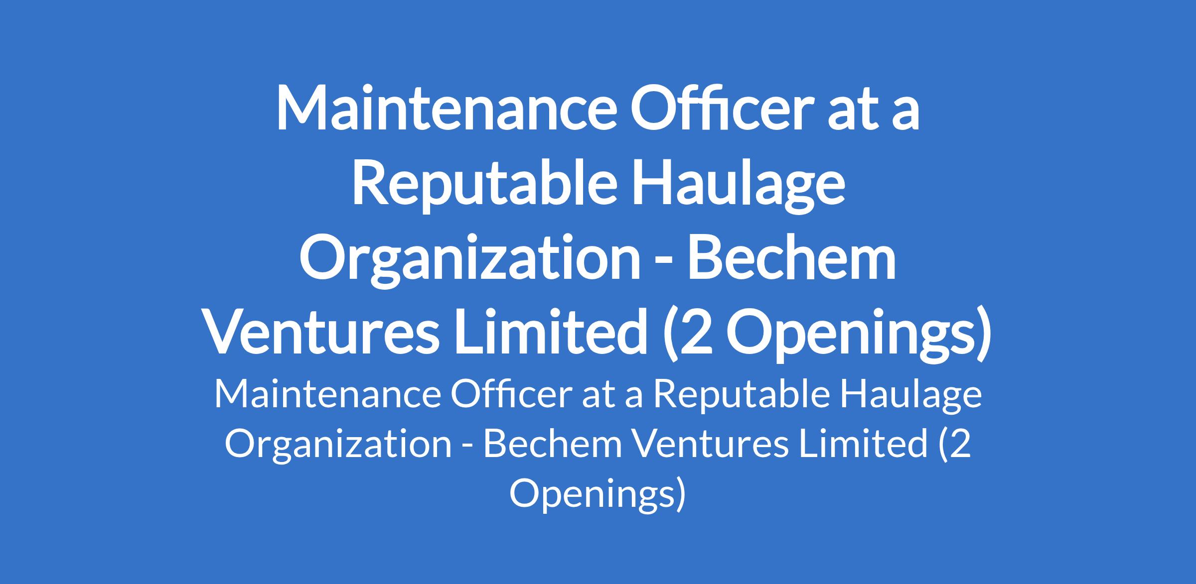 Bechem Ventures Limited - Our client, a reputable haulage organization is recruiting to fill the position of: Maintenance Officer. Salary: N150,000 - N500,000 monthly. The position is located in Calabar, Cross River and Lagos States. Interested candidates should possess relevant qualifications.