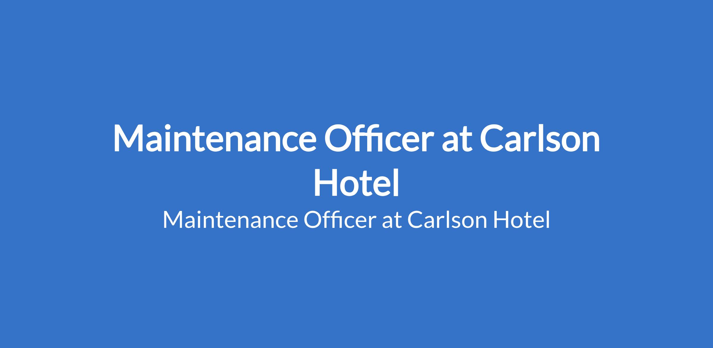Carlson Hotel is recruiting to fill the position of: Maintenance Officer. The position is located in Ikoyi, Lagos State. Salary: N100,000 monthly. Interested candidates should possess relevant qualifications with experience.