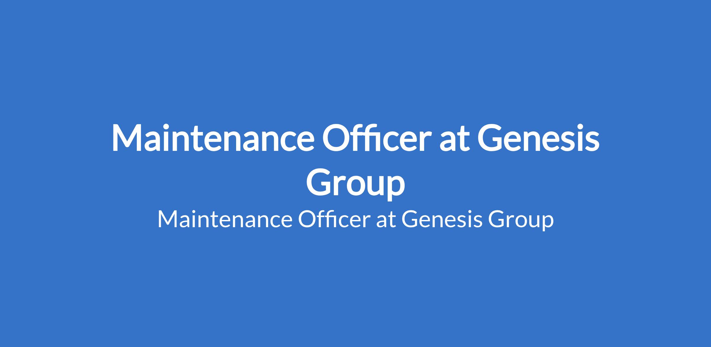 Genesis Group is recruiting to fill the position of: Maintenance Officer. Interested candidates should possess relevant qualifications.