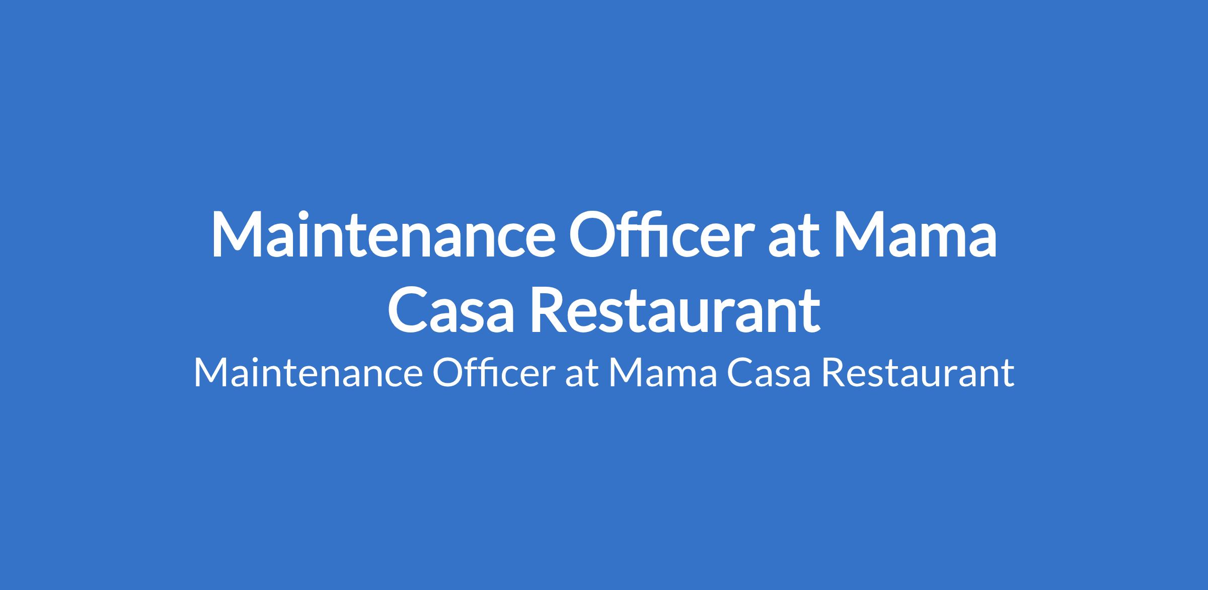 Mama Casa Restaurant is recruiting to fill the position of: Maintenance Officer. The position is located in Victoria Island, Lagos State. Salary: N200,000 monthly. Interested candidates should possess relevant qualifications with 2 years of work experience in facility or equipment maintenance, preferably in a hospitality or restaurant environment.