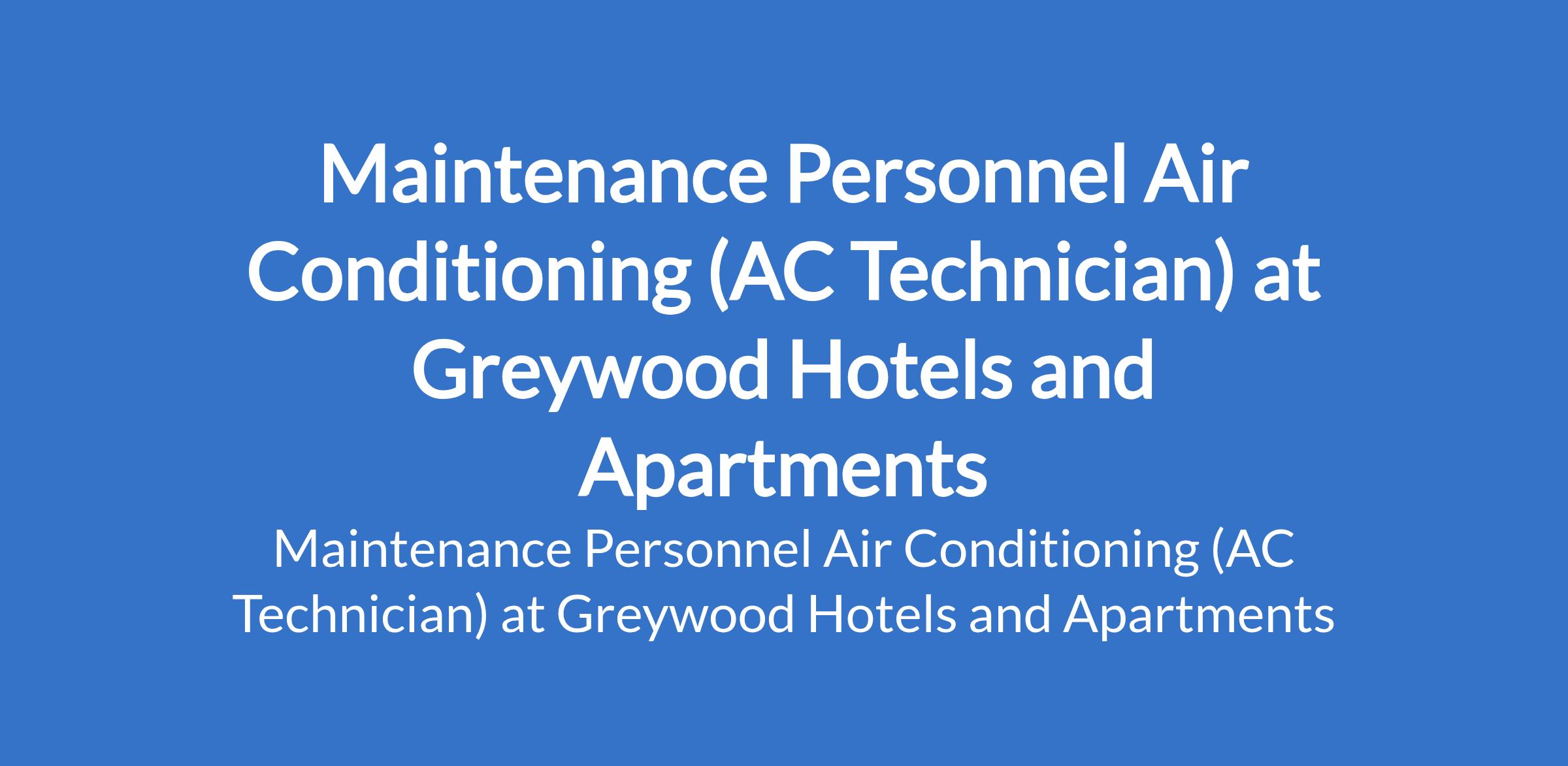 Maintenance Personnel Air Conditioning (AC Technician) at Greywood Hotels and Apartments