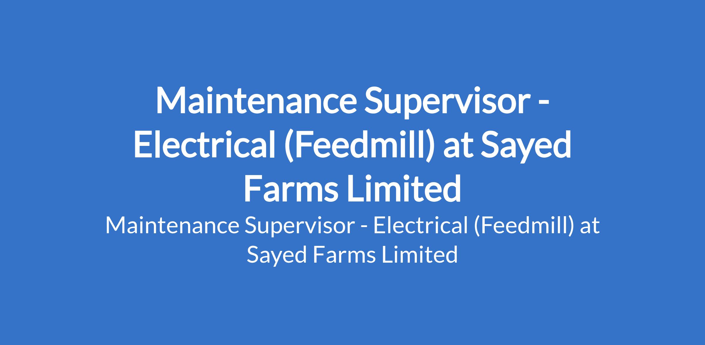 Sayed Farms Limited is recruiting to fill the position of: Maintenance Supervisor - Electrical (Feedmill). The position is located in Ibadan, Oyo State. Interested candidates should possess a Bachelors Degree or HND in Electrical Engineering or related field with a minimum of 7 years experience in electrical maintenance within an industrial environment.