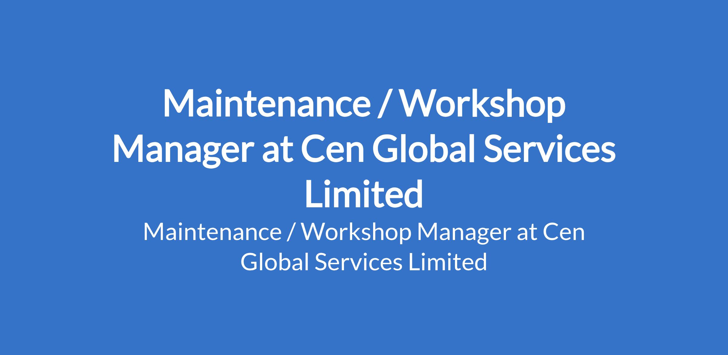 Cen Global Services Limited is recruiting to fill the position of: Maintenance / Workshop Manager. The position is located in Port Harcourt, Rivers State. Interested candidates should possess a Bachelors Degree or HND in Mechanical Engineering, Electrical Engineering, or related field with 5 8 years experience in maintenance or workshop management.