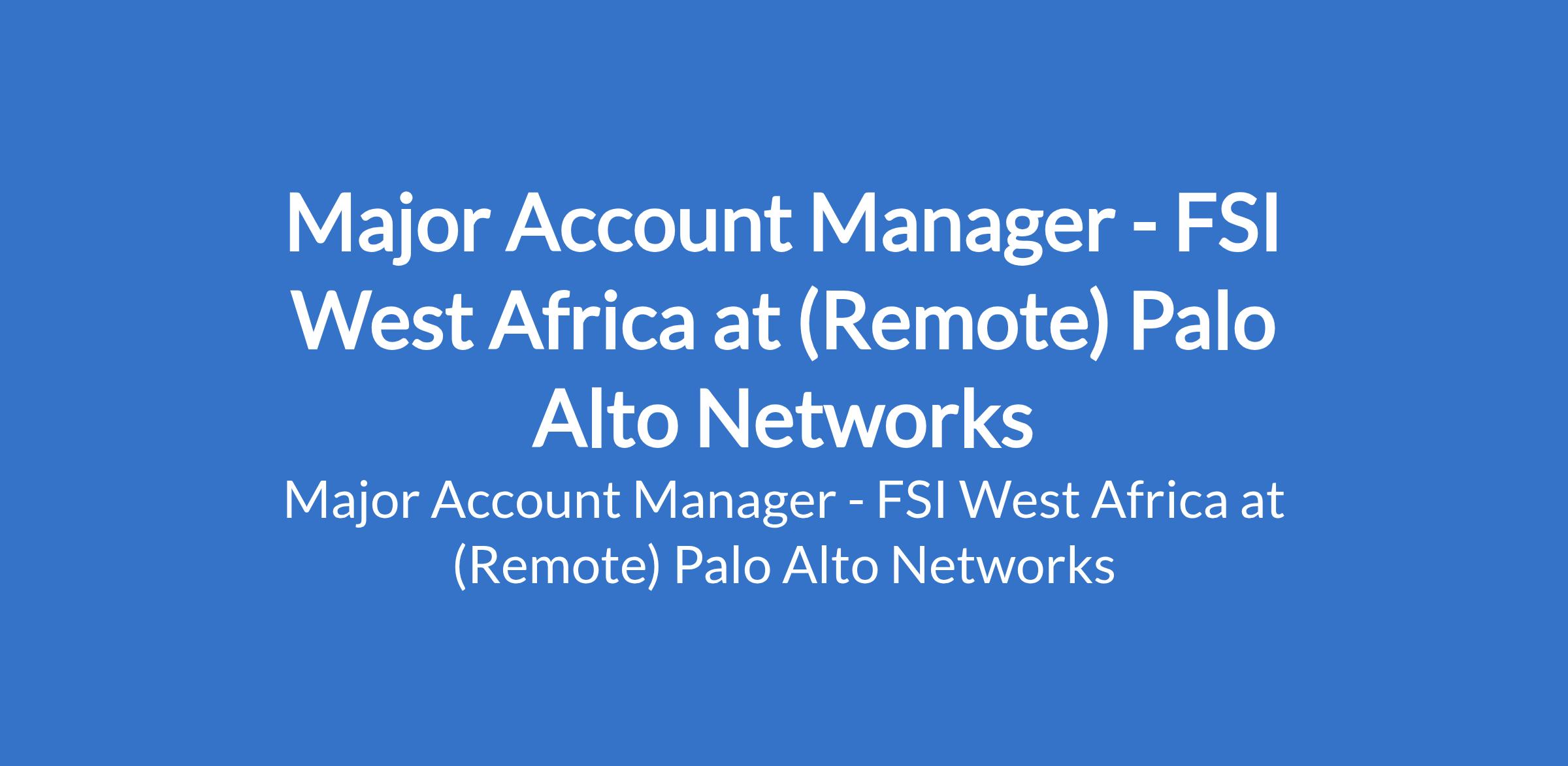 Major Account Manager - FSI West Africa at (Remote) Palo Alto Networks