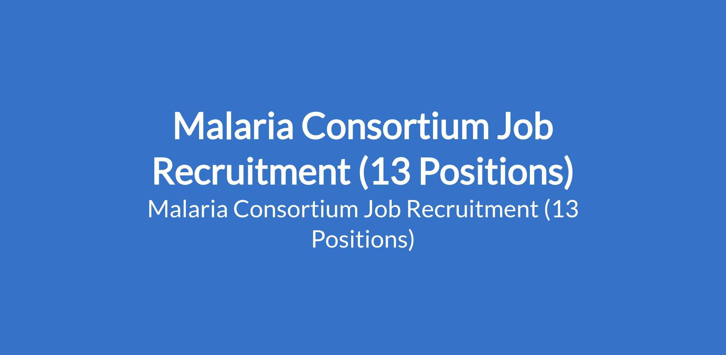 Malaria Consortium is recruiting suitable candidates to fill the following positions in Abuja (FCT): Campaign Senior M&E Officer, Campaign Senior Technical Specialist, Campaign Finance Officer, Driver, Social and Behavior Change Consultant (SBCC), Senior Programme Officer, Programme Officer, Campaign Senior Procurement Officer, Campaign Research Specialist, Campaign Supply Chain & Logistics Officer, Campaign Security Officer, Campaign Digital Health Officer, and Campaign Programme Officer.
